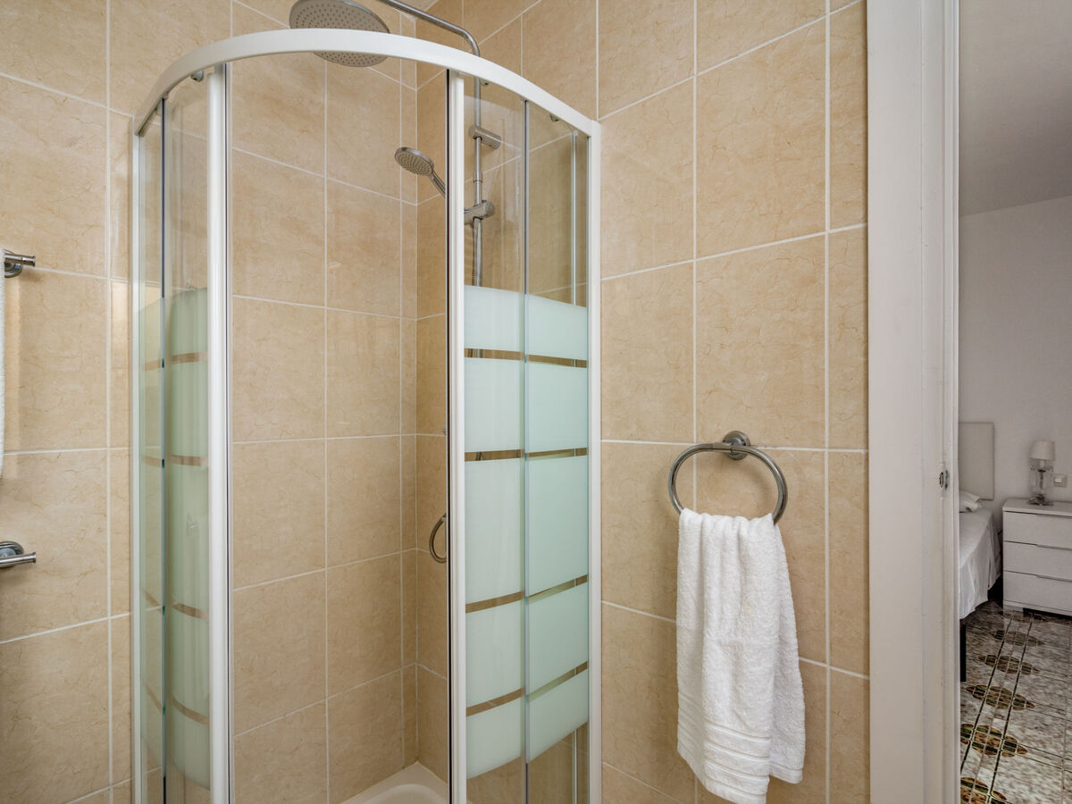 1 chambre avec 1 grand-lit (160 cm, longueur 200 cm), douche/WC, radiateur et air-conditionné.