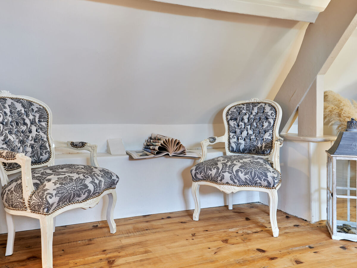 À l'étage supérieur: 1 chambre avec 2 lits (90 cm, longueur 190 cm).