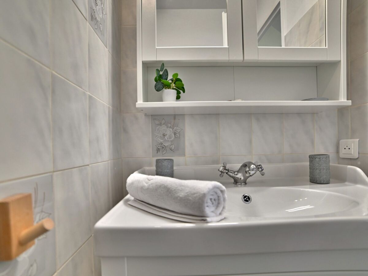 Aménagement agréable: séjour/salle à manger avec 1 divan-lit double (140 cm, longueur 190 cm), TV (écran plat).