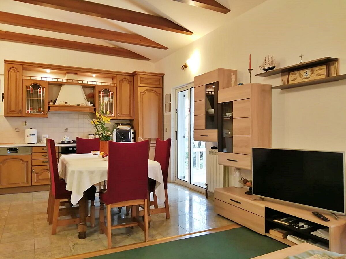 Séjour/salle à manger avec 1 divan-lit double (140 cm, longueur 200 cm), TV (satellite) et air-conditionné.