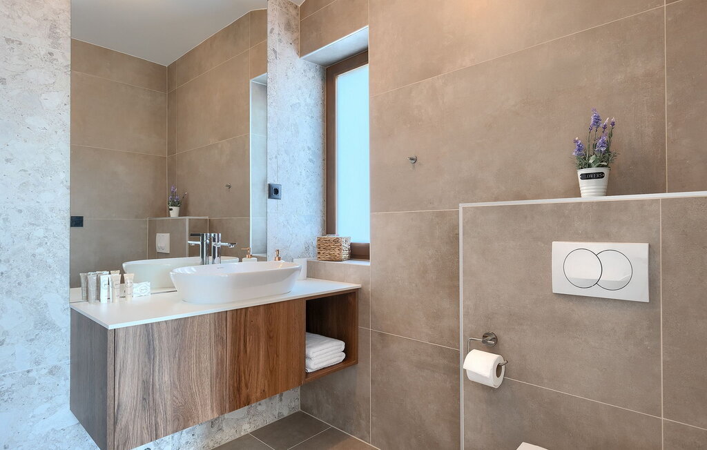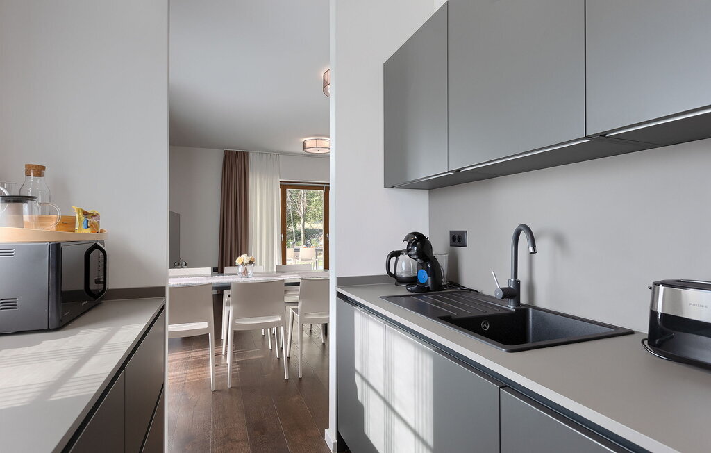 La Villa Minerva vous offre une piscine privée avec une vue magnifique sur la forêt verdoyante qui entoure la propriété. Détendez-vous sur l'une des 6 chaises longues au milieu de la nature et regardez le ciel bleu pendant que vos enfants jouent dans le grand jardin autour de la piscine. Préparez un repas sur le barbecue et savourez-le à la table à manger extérieure pour 6 personnes. En entrant dans la villa, vous trouverez un salon moderne avec télévision, juste à côté se trouve une autre table à manger pour 6 personnes et une cuisine entièrement équipée. Toute la pièce est éclairée par la lumière naturelle grâce aux grandes fenêtres. Un étage plus haut se trouvent 3 chambres doubles confortables, chacune avec sa propre télévision et sa propre salle de bain.