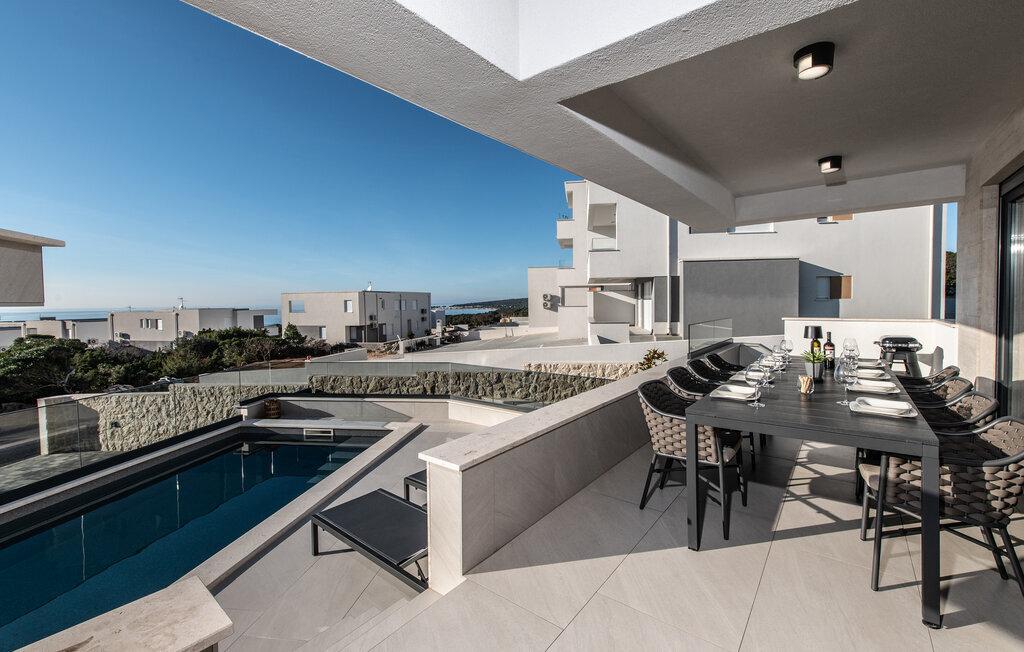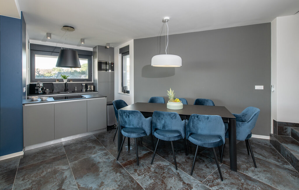 Cette villa moderne et élégante vous accueille à la périphérie de la station balnéaire très prisée de Novalia. Équipée de meubles de qualité, d'un design chic et d'une belle décoration, vous trouverez ici, avec votre famille ou un groupe d'amis, l'endroit parfait pour vous offrir une pause dans votre quotidien. Profitez de plusieurs étages pour vous prélasser sur les canapés, passer des nuits reposantes dans les chambres confortables et suivre votre programme de fitness quotidien dans la salle de fitness avec sauna. Sortez des chambres sur les balcons ou la terrasse et laissez votre regard se poser sur les alentours jusqu'à la mer. Regardez également vos enfants se baigner dans la piscine et prenez un bain de soleil sur le pont supérieur.