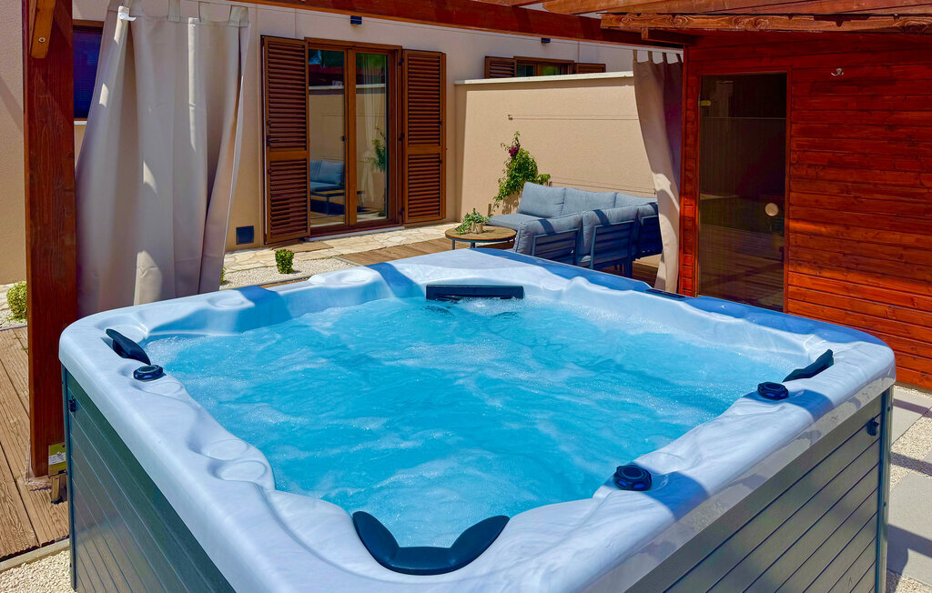 Bien-être à l'extérieur : Location de vacances disposant de chaises-longues et d'un ou plusieurs équipements tels que piscine extérieure, jacuzzi extérieur, lit à baldaquin de jardin etc...
