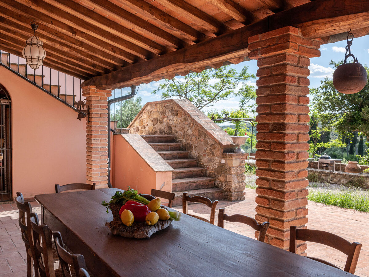 Une autre longue table sous la terrasse couverte offre calme et ombre et est donc idéale pour le petit-déjeuner ou le déjeuner.