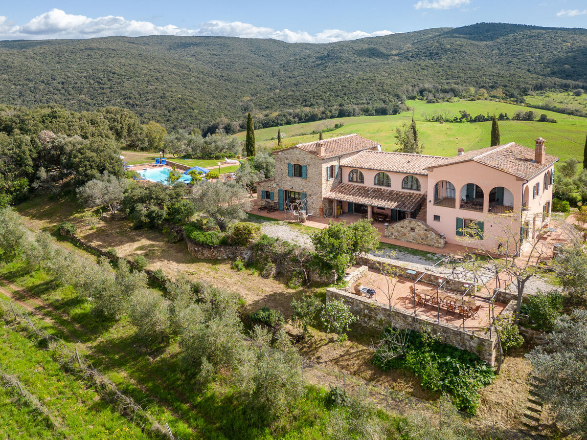 À 10 km du centre de Massa Marittima, à 6 km du centre de Valpiana, à 18 km du centre de Follonica, situation isolée, tranquille sur une colline, à 18 km de la mer, dans la verdure.