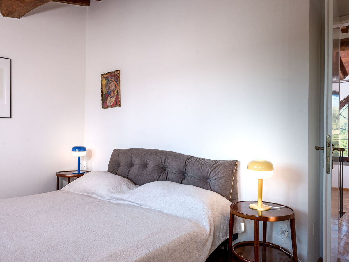 1 chambre avec 1 lit double (180 cm), bain/douche/bidet/WC, double vasque et air-conditionné.