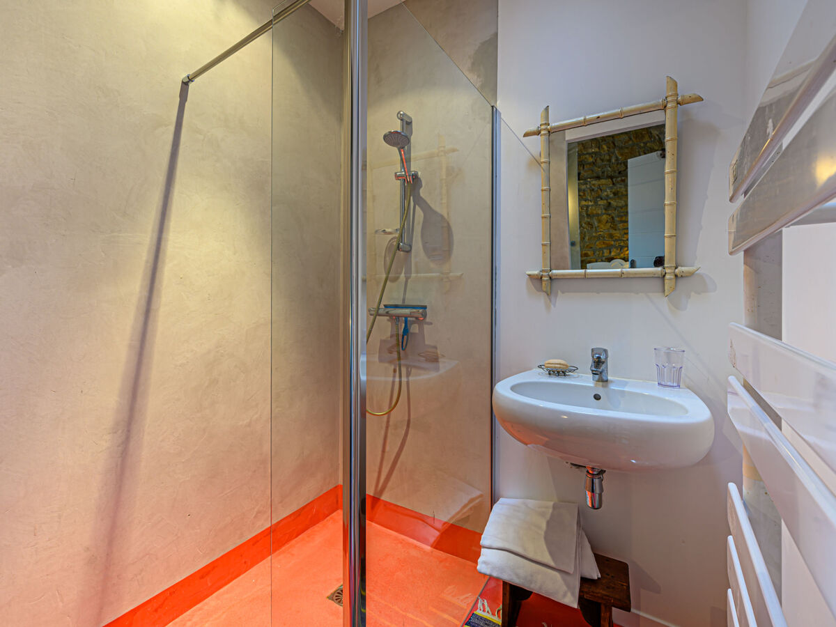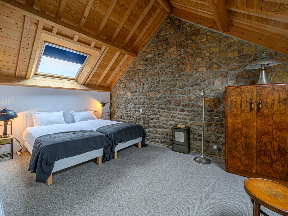 À l'étage supérieur: 1 chambre avec 1 grand-lit (1 x 160 cm, longueur 200 cm).