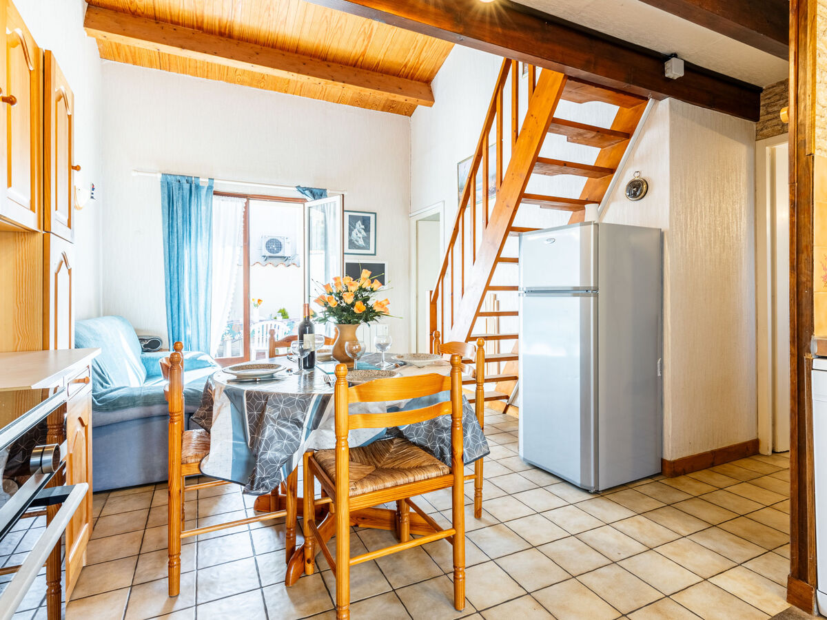Aménagement simple et agréable: séjour/salle à manger avec table pour les repas et TV (écran plat).