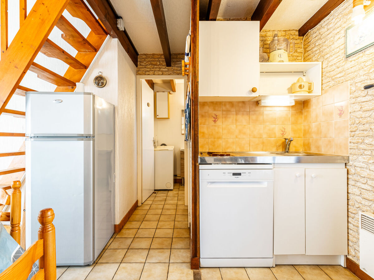 Cuisine ouverte (four, lave-vaisselle, 3 plaques vitrocéramiques, grille-pain, bouilloire électrique, micro-ondes, congélateur, cafetière électrique).