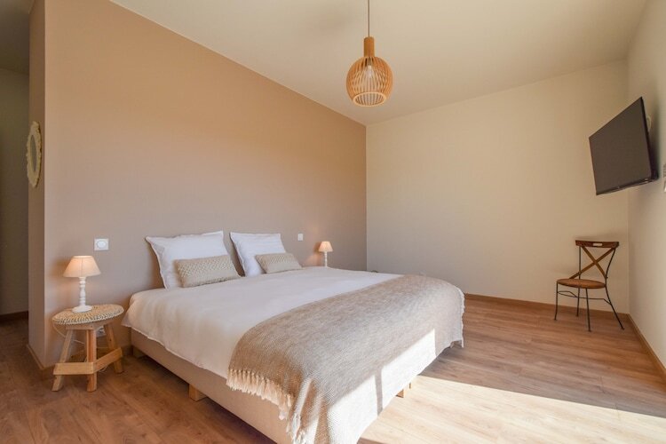 Située de plain-pied, La Dorioterie offre un espace salon-séjour lumineux avec cuisine entièrement équipée, ouvrant sur une terrasse couverte. Elle comprend trois chambres doubles avec salles d’eau privatives, dont une chambre familiale avec lits superposés. À l’extérieur, la piscine privée chauffée invite à la détente tout en profitant de la vue exceptionnelle. Les chambres sont équipées de la climatisation pour un confort optimal tout au long de l’année.