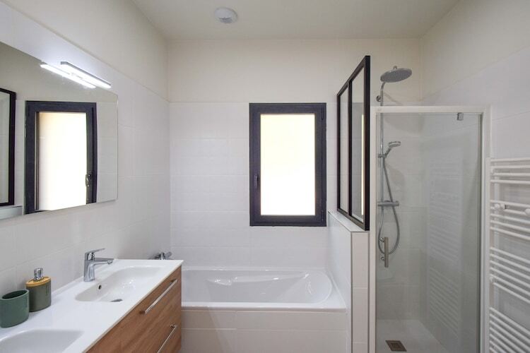 Rez-de-chaussée: (Salle de séjour(TV, coin salon), cuisine ouverte(table, bouilloire, plaque de cuisson, cafetière/percolateur, four/micro-onde combinés, lave-vaisselle , combinaison réfrigérateur/congélateur), chambre avec salle de bains(Lit double ou 2 x lit simple(douette, synthétique, boxspring), baignoire, douche, 2x lavabo, WC), chambre avec salle de bains(Lit double ou 2 x lit simple(douette, synthétique, boxspring), douche, lavabo, WC), chambre avec salle de bains(Lit superposé, Lit double ou 2 x lit simple(douette, synthétique, boxspring), douche, lavabo, WC), WC) TV, micro ondes, lave-vaisselle , sèche-linge, baignoire où douche, lave-linge , chauffage, chauffage(électrique), terrasse, jardin, mobilier de jardin, barbecue, parking, parasol, piscine(privé, chauffée, ouvert de Mai jusqu'à (inclus) Sept), court de tennis(partagé avec d'autres clients), terrain de pétanque(partagé avec d'autres clients), équipements de jeux(partagé avec d'autres clients), lit d'enfant(sur demande), chaise haute(sur demande), table à repasser