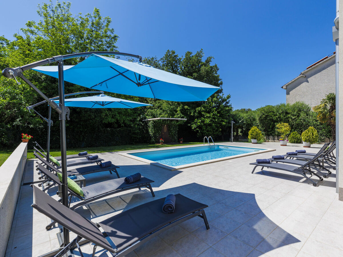 A usage privé: terrain 700 m2 (clôturé), piscine rectangulaire (8 x 4 m, profondeur 145 cm, disponibilité saisonnière: 01.Mai.