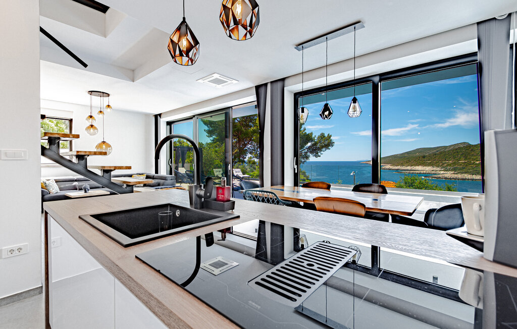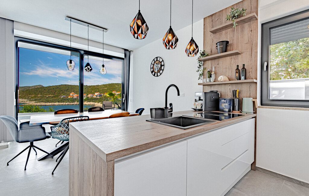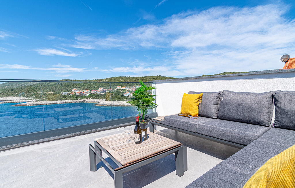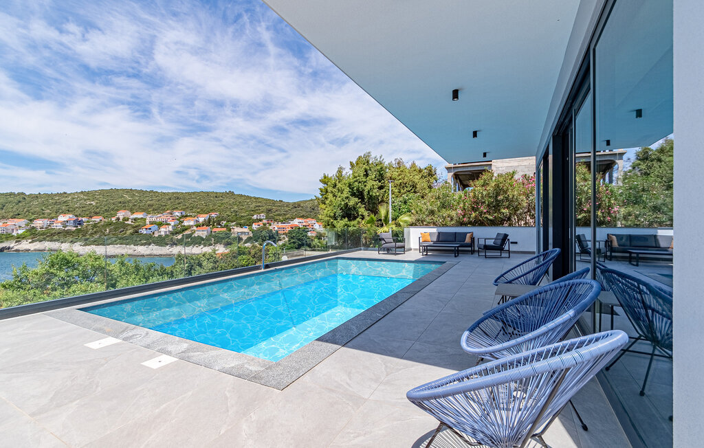 Avec une vue de rêve sur la mer et la côte de l'île de Korcula, cette villa spacieuse et moderne vous accueille.