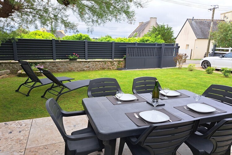 Cette très jolie maison de vacances avec un jardin clos, se situe à seulement 150 m de la plage. La petite impasse qui mène directement à la plage offre, après quelques pas seulement, une vue magnifique sur la mer. Le logement de plain-pied surprend par son mélange réussi d'ancien et de nouveau. Le salon traditionnel avec des meubles bretons et un coin cheminée cosy se prolonge par un espace moderne avec une cuisine bien équipée et une véranda lumineuse qui abrite la salle à manger. En été, vous profiterez volontiers de l'espace barbecue adjacent pour d'agréables repas en plein air. Deux chambres et deux salles de bains offrent un excellent confort pour 4 personnes.