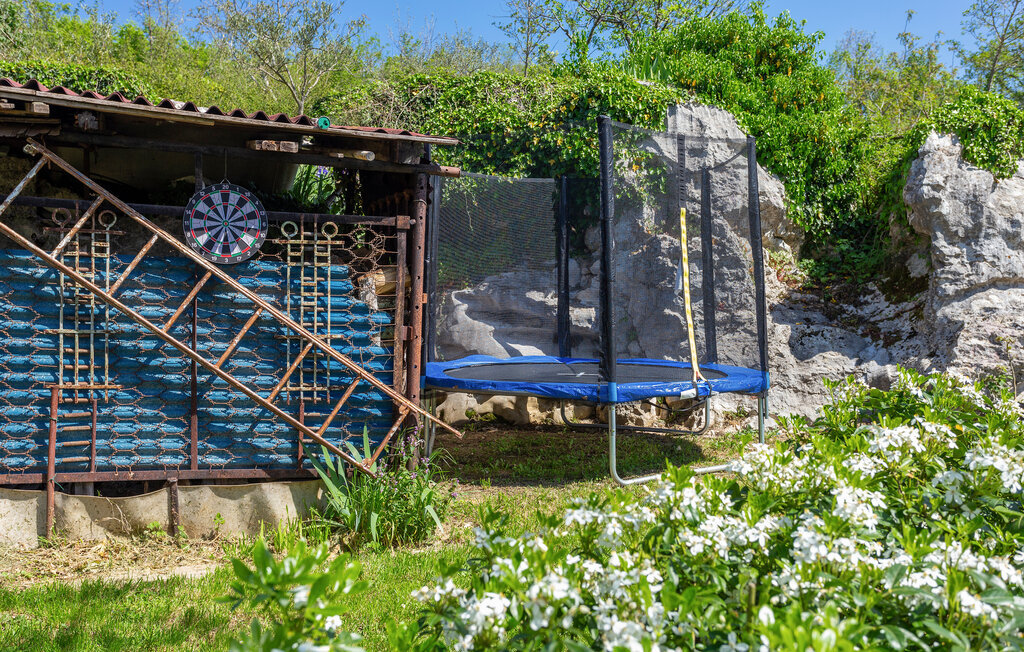 Bienvenue dans cette oasis charmante et idéale pour les familles. Empruntez en voiture le chemin qui traverse le grand terrain et atteignez la maison bien équipée, qui vous offre tout ce dont vous avez besoin pour passer des vacances en famille sans souci. Vous passerez de nombreuses heures à l'extérieur et pourrez admirer le paysage et le terrain depuis les terrasses. Regardez vos enfants jouer sur le trampoline et partez cueillir des fruits ou des légumes dans le jardin pour préparer de bons petits plats dans la cuisine ou sur le barbecue. Profitez du jardin aromatique et, en tant qu'amoureux de la nature, venez vous y ressourcer. Le rafraîchissement dans la piscine est également un changement bienvenu et complète l'offre de l'hébergement de vacances.