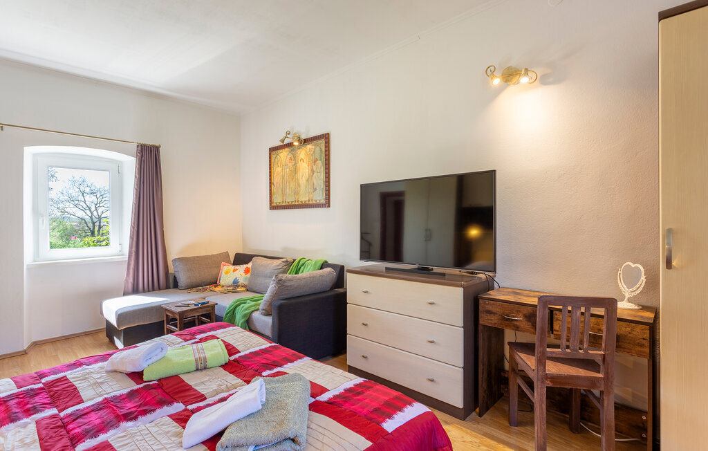 Pendant votre séjour, ne manquez pas de visiter le centre historique de la vieille ville de Labin, où de nombreuses manifestations culturelles sont organisées en été, et Rabac, une magnifique station touristique sur la côte est de l'Istrie, où vous pourrez faire une promenade en bateau, profiter de belles plages de galets et d'une mer cristalline. Cette destination est idéale pour explorer d'autres villes et communes attrayantes d'Istrie.