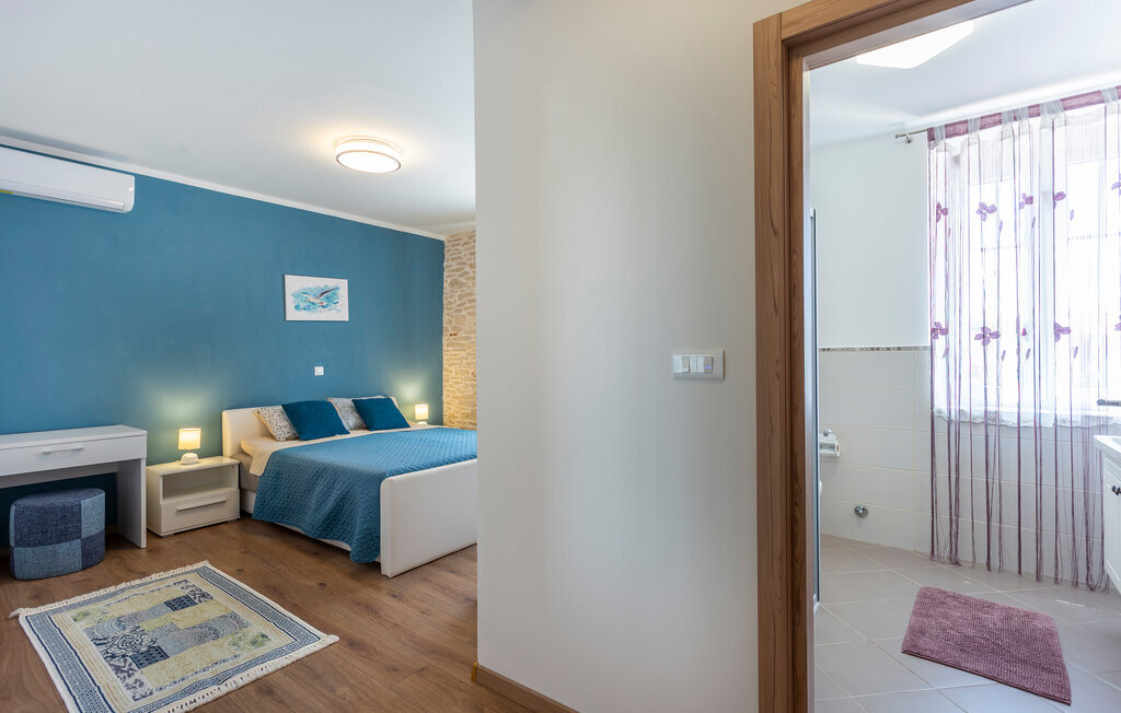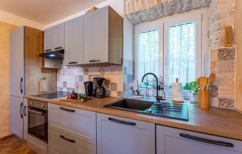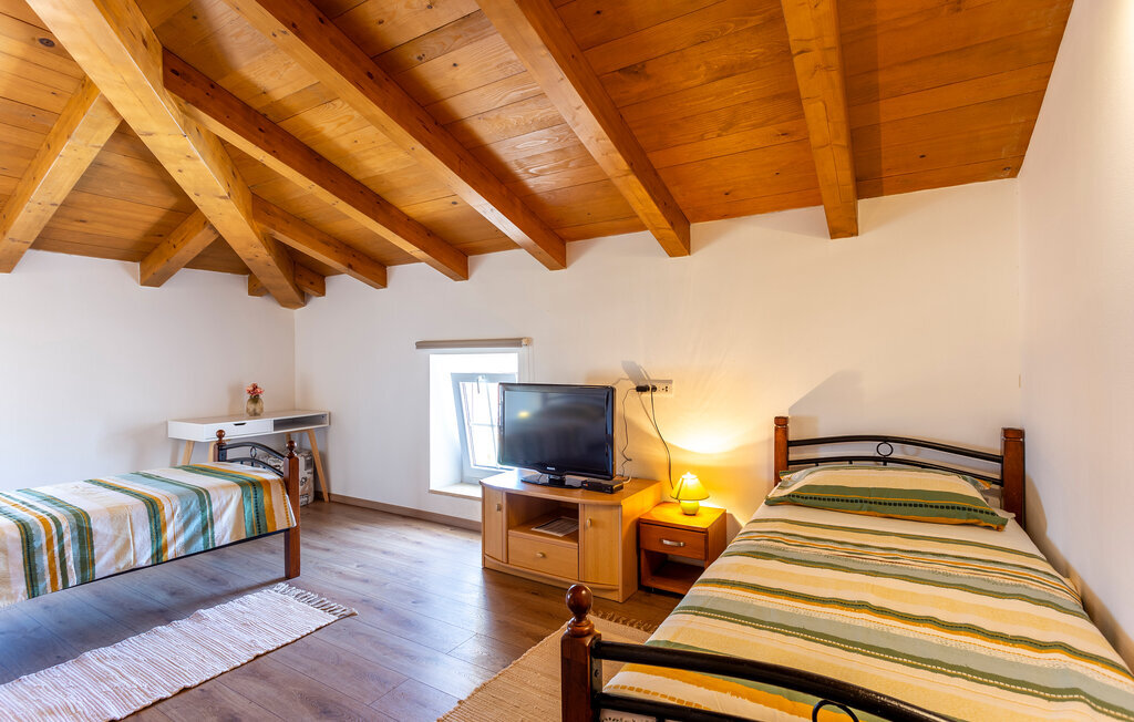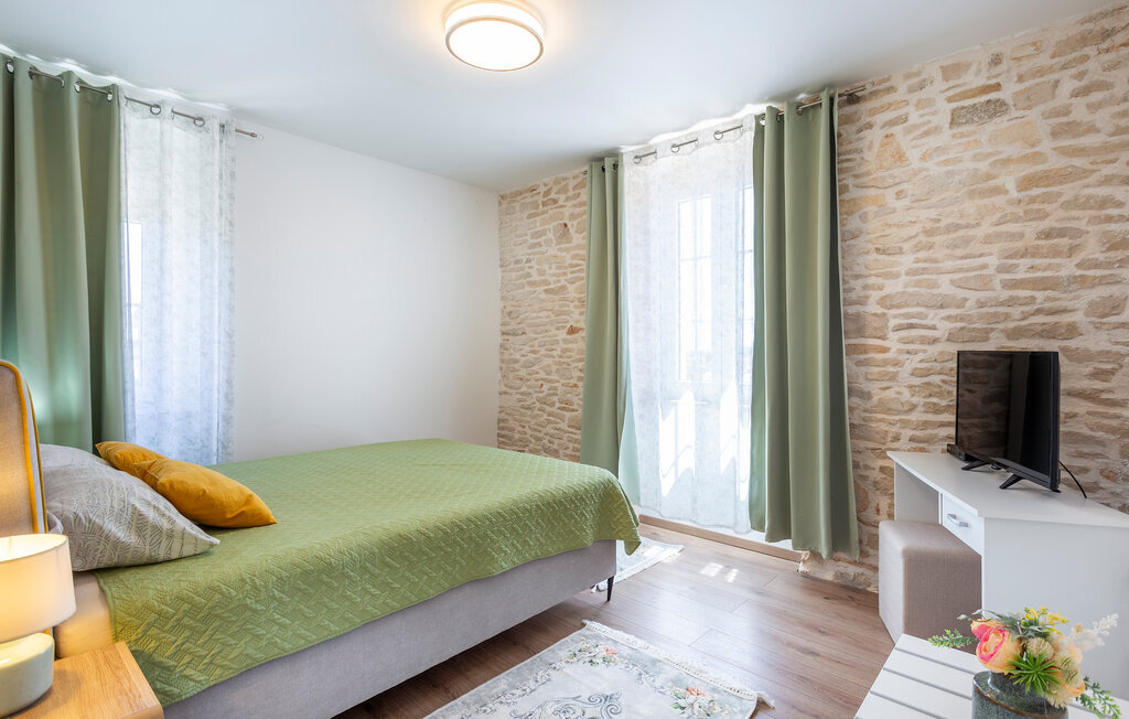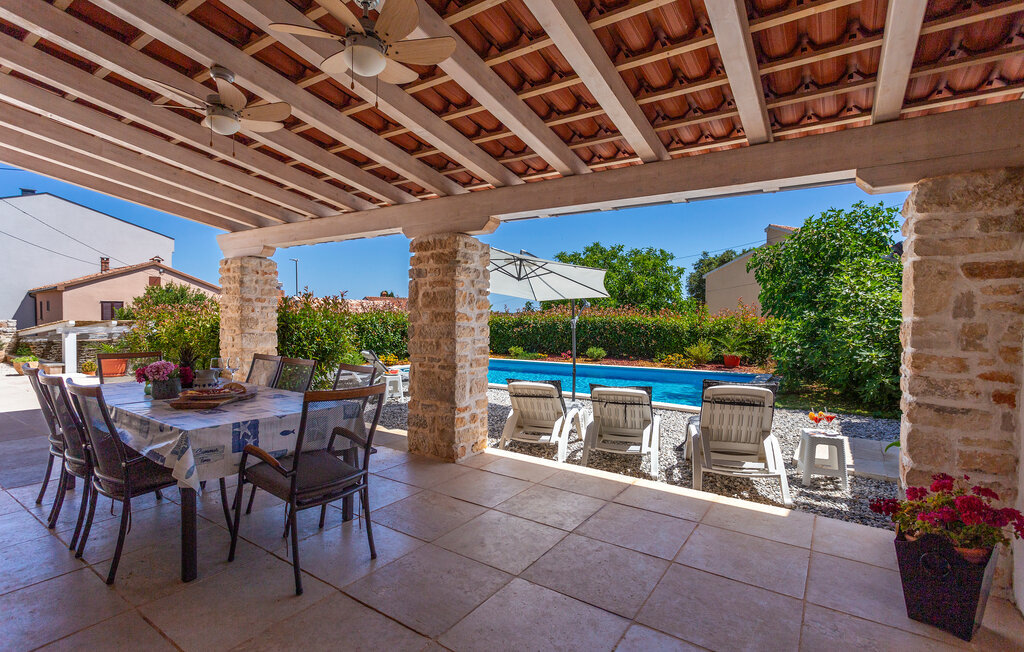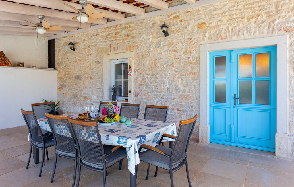 Cette magnifique maison en pierre d'Istrie allie le charme rustique au confort moderne. Les pièces intérieures, aménagées avec goût, dégagent une atmosphère chaleureuse et accueillante. Dans le vaste espace de vie, vous trouverez tout ce dont vous avez besoin pour passer des vacances reposantes. Organisez une soirée cinéma ou réunissez-vous dans la grande cuisine-salle à manger pour cuisiner ensemble.