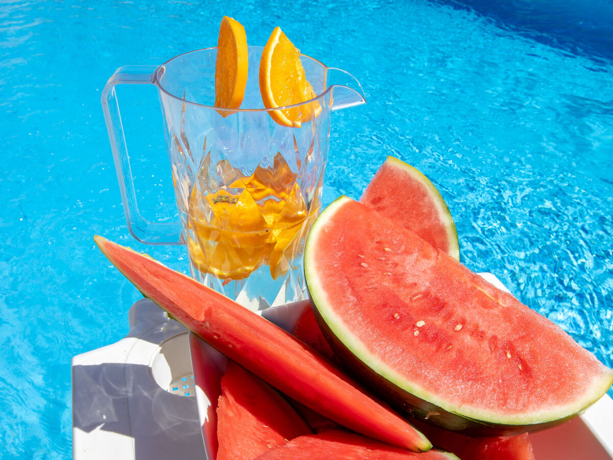 À l’extérieur, cette belle maison offre sur un jardin entretenu de 600 m², sur une piscine de 10 m de long et sur une douche extérieure. Une place de parking couverte est aussi disponible près de la maison.