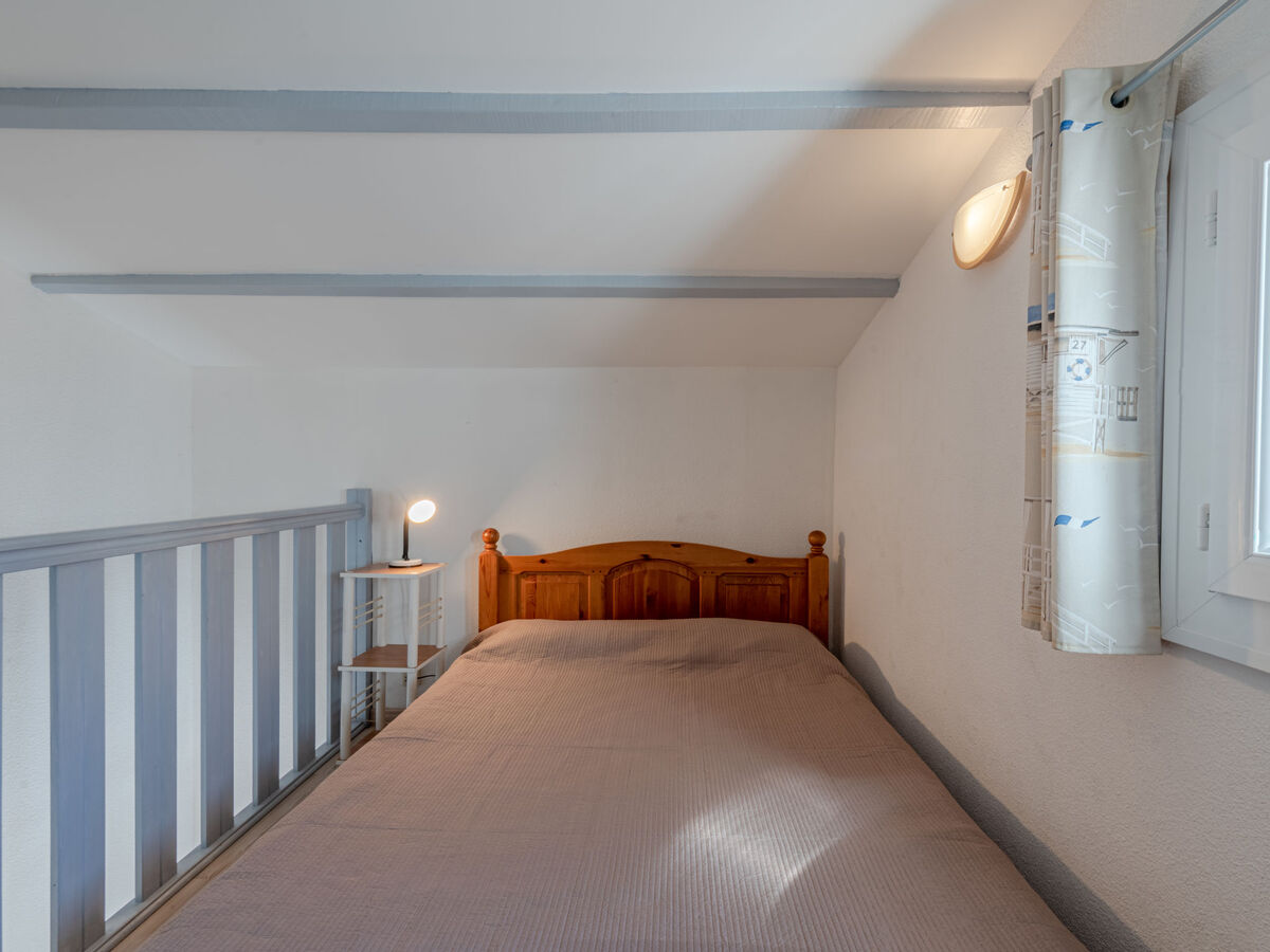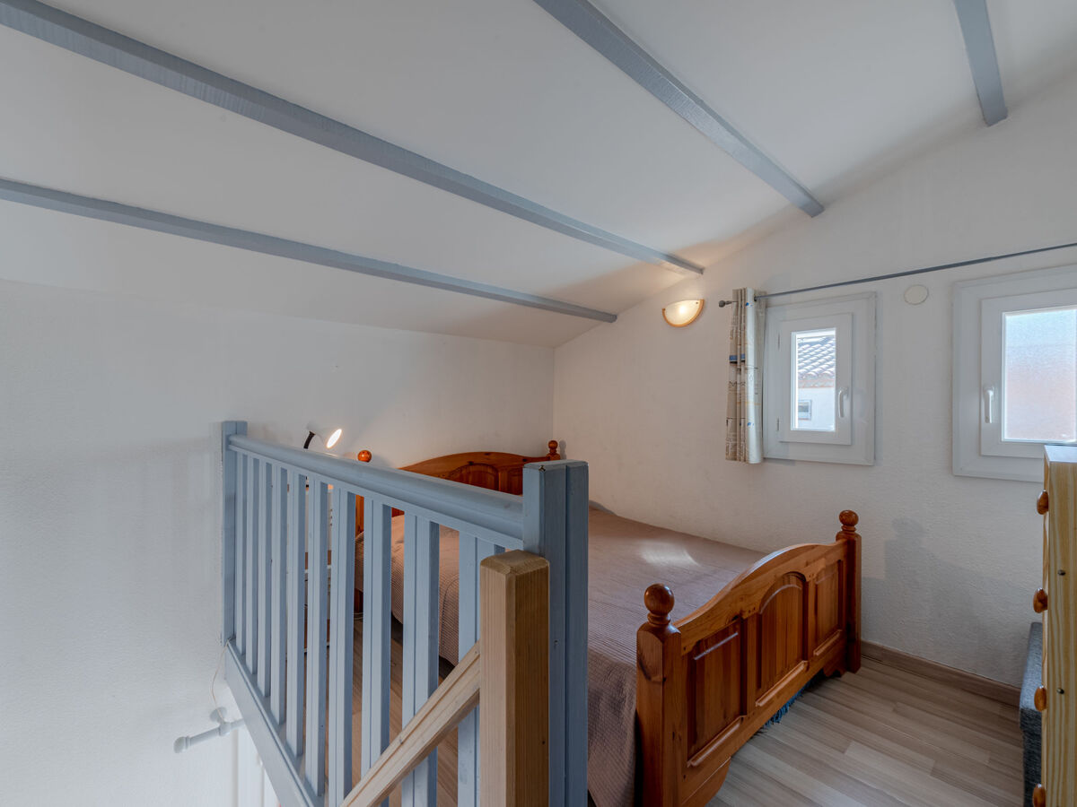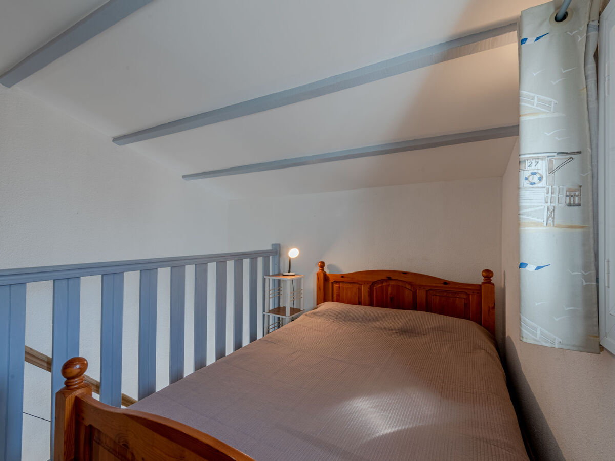 À l'étage supérieur: (escalier raide) galerie mansardée, ouverte avec 1 grand-lit (140 cm, longueur 190 cm).