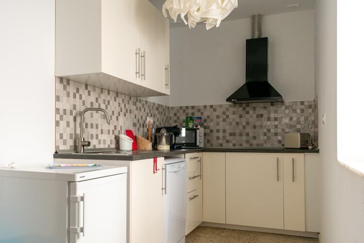 Au 1er étage: (Entrée(coin salon, baby-foot), Salle de séjour(canapé-lit double, TV, table, coin salon), cuisine ouverte(grille-pain, plaque de cuisson, cafetière/percolateur, micro ondes, lave-vaisselle , combinaison réfrigérateur/congélateur), chambre(lit double), chambre(lit simple), salle de bains(douche, lavabo, WC))