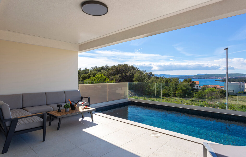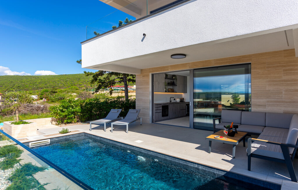 Passez un moment inoubliable dans cette maison accueillante et spacieuse, qui vous accueille dans une situation panoramique unique sur l'île de Krk. Détendez-vous ici dans une ambiance élégante, des pièces lumineuses avec un équipement confortable constituent le cadre de votre séjour. Préparez un bon dîner, profitez de la vue de rêve, détendez-vous dans le sauna et installez-vous confortablement ensemble après une journée passionnante.