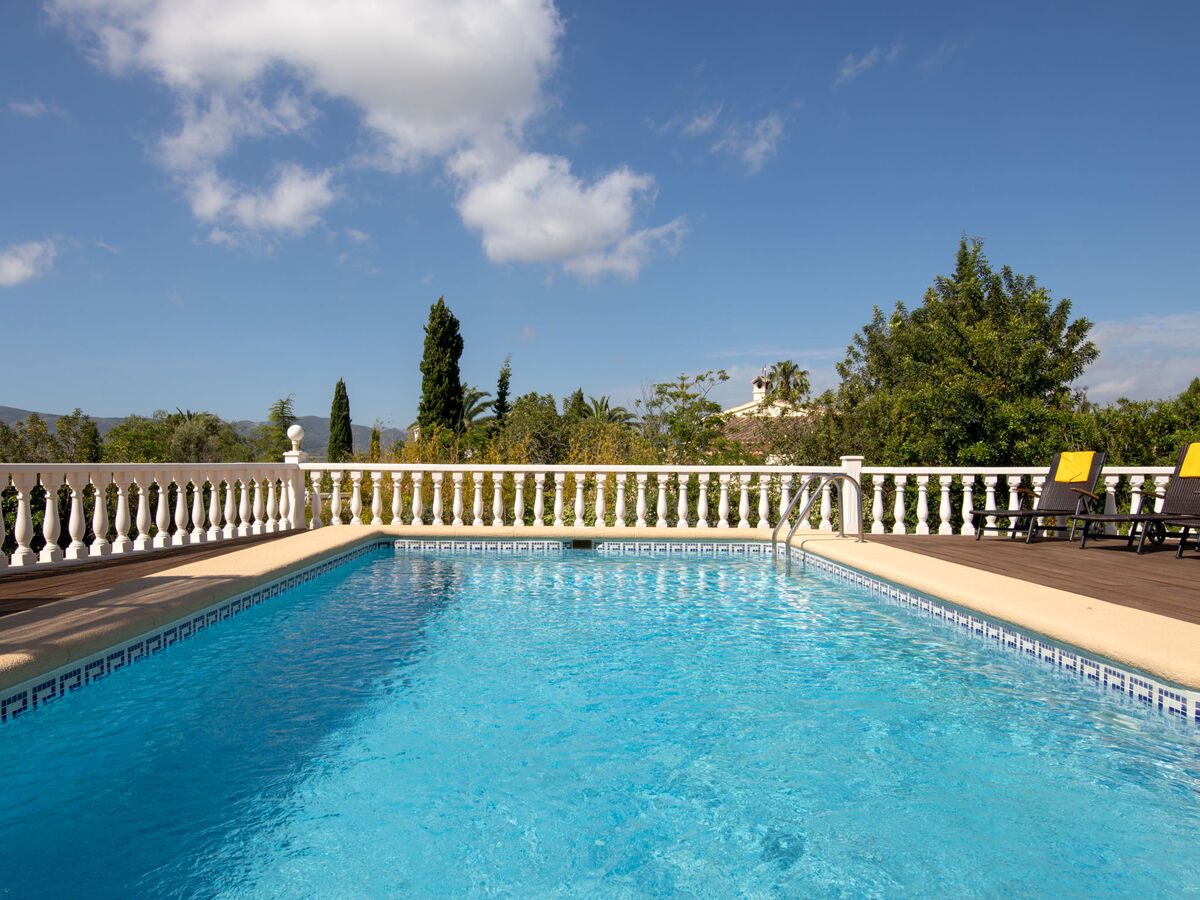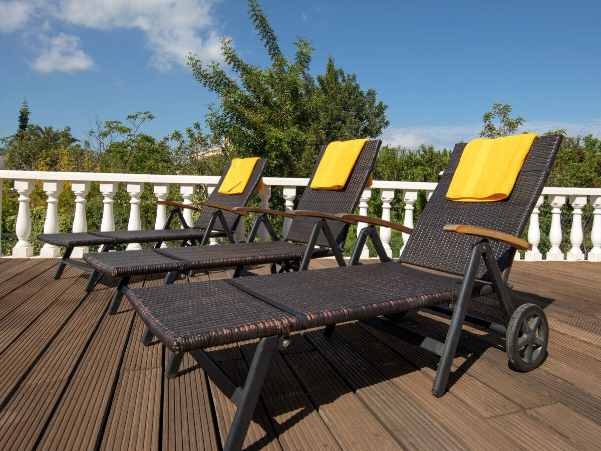 La propriété invite ses occupants à se prélasser sur le grand jardin privé et clôturé de 1.550 m2 avec des plantes et arbres. La piscine de 4 x 8 m de cette location de vacances est dotée des marches intérieures.