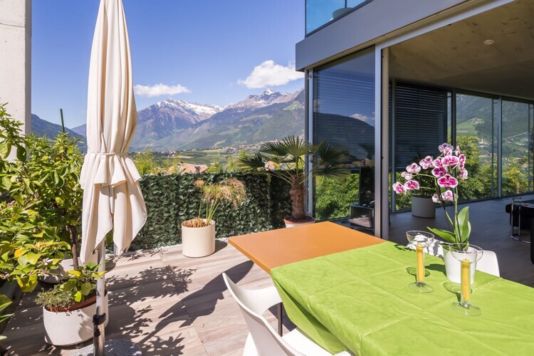 Appartement de vacances exclusif à Schenna dans le pays de Meran : spacieux, inondé de lumière, moderne et adapté pour 4 personnes sur une surface habitable de 86 m².
