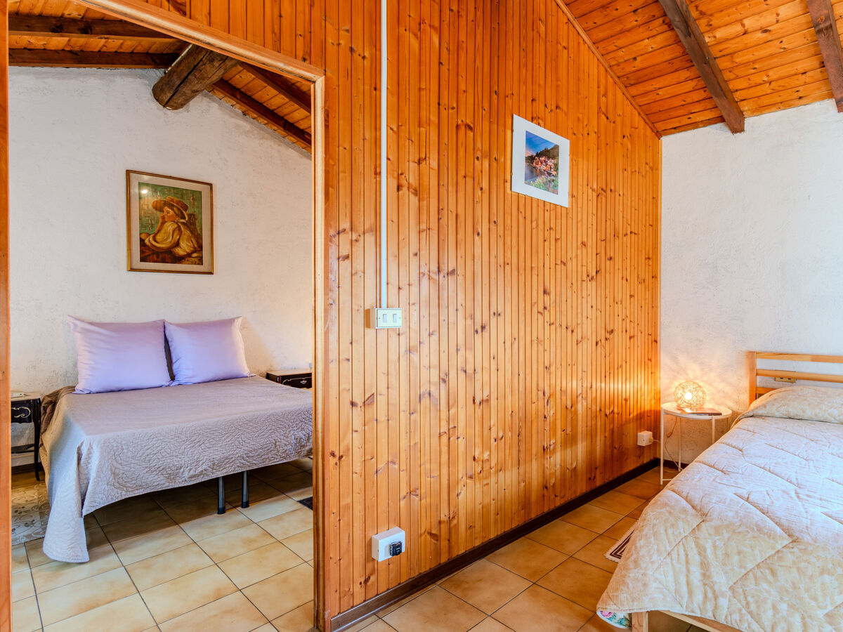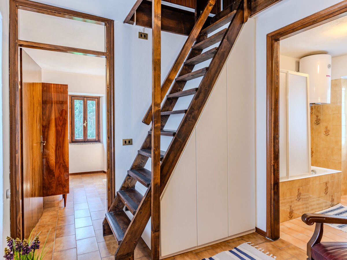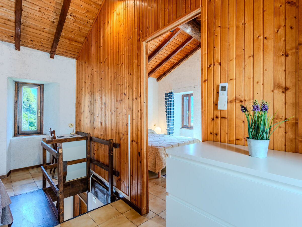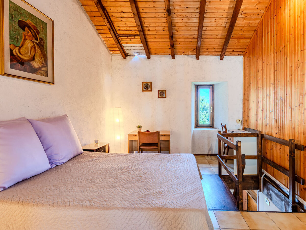 Rustico accueillant "Casa Sul Torrente", de 3 étages, environné par les arbres.