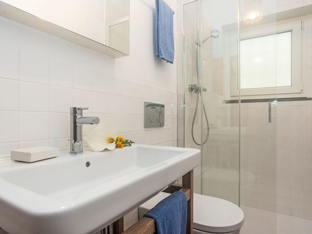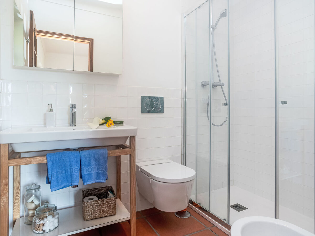 1 chambre avec 1 grand-lit (1 x 160 cm, longueur 210 cm), douche/WC.