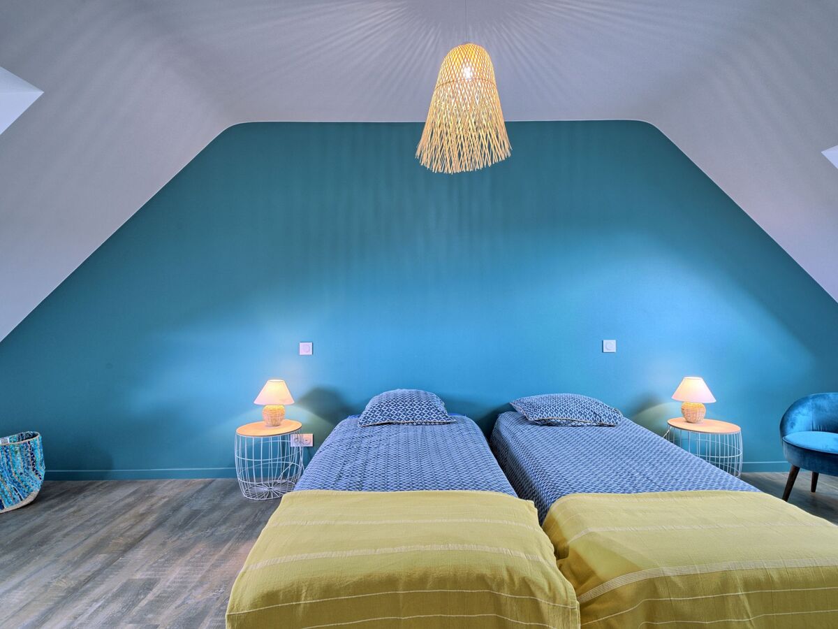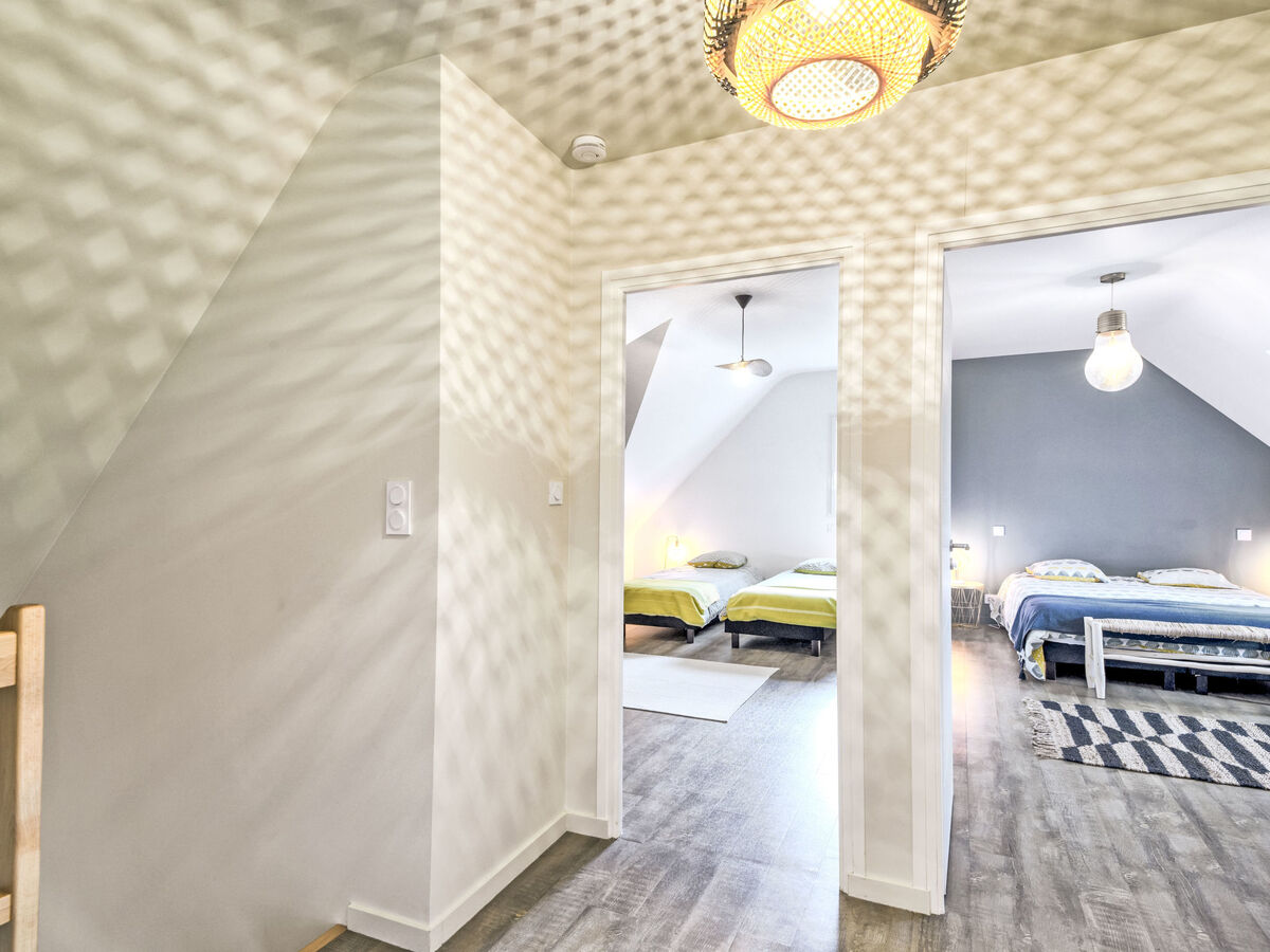 2 chambres, mansardées, chaque chambre avec: 2 lits (80 cm, longueur 200 cm).