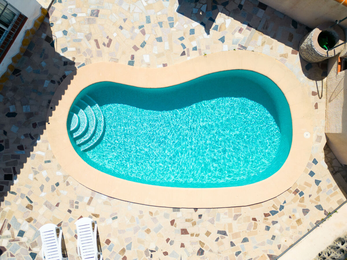 A usage privé: terrain 800 m2 (clôturé), piscine en forme d’haricot (4 x 8 m, profondeur 120 - 200 cm, disponibilité saisonnière: 01.Jan.