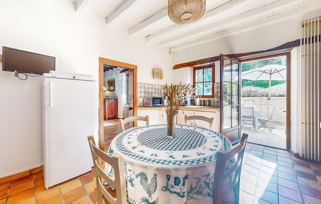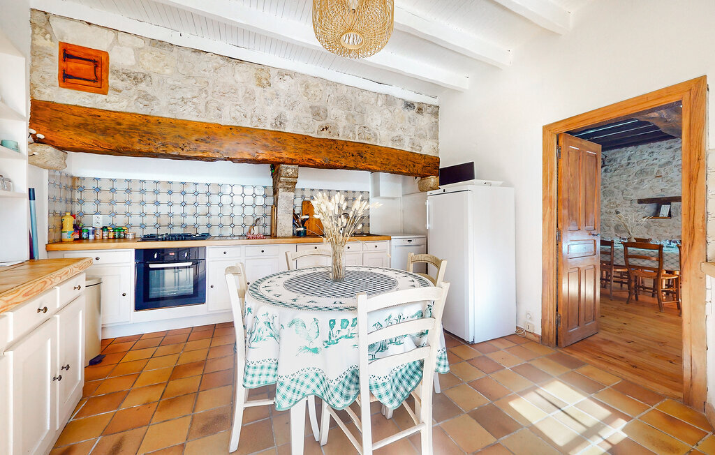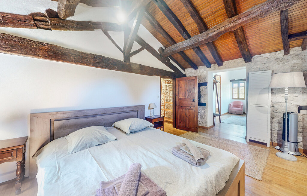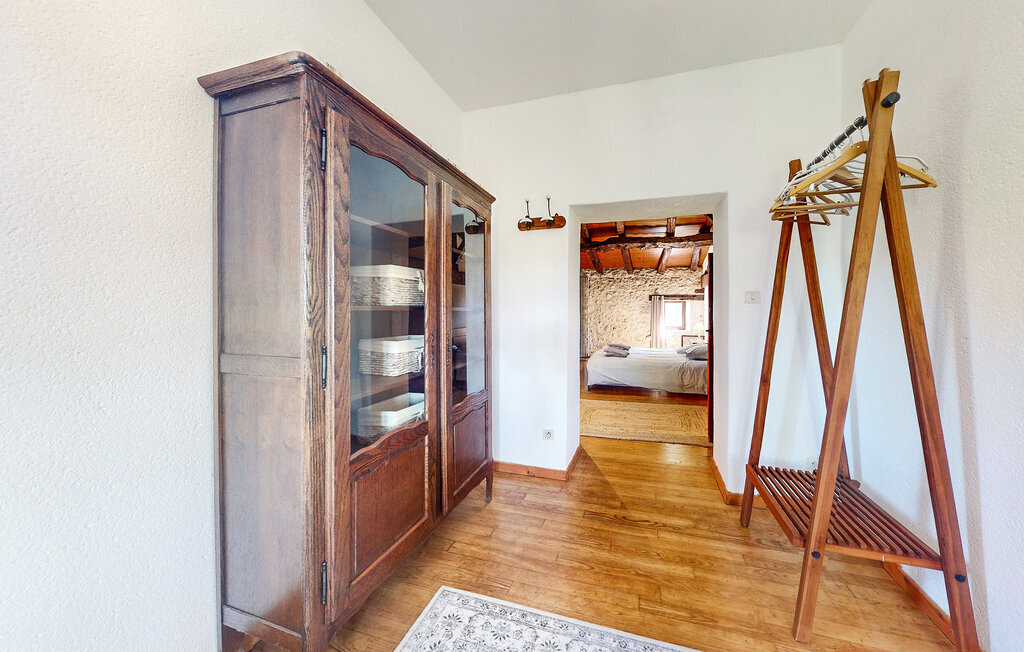 La maison spacieuse vous attend dans un endroit absolument idyllique et offre une vue fantastique sur le paysage. Installez-vous confortablement dans les pièces accueillantes, où les vieilles poutres en bois et les murs en partie non crépis racontent la longue histoire de la maison. Prenez vos repas ensemble autour de la longue table à manger, puis installez-vous confortablement dans le salon et détendez-vous dans une atmosphère confortable et particulière.