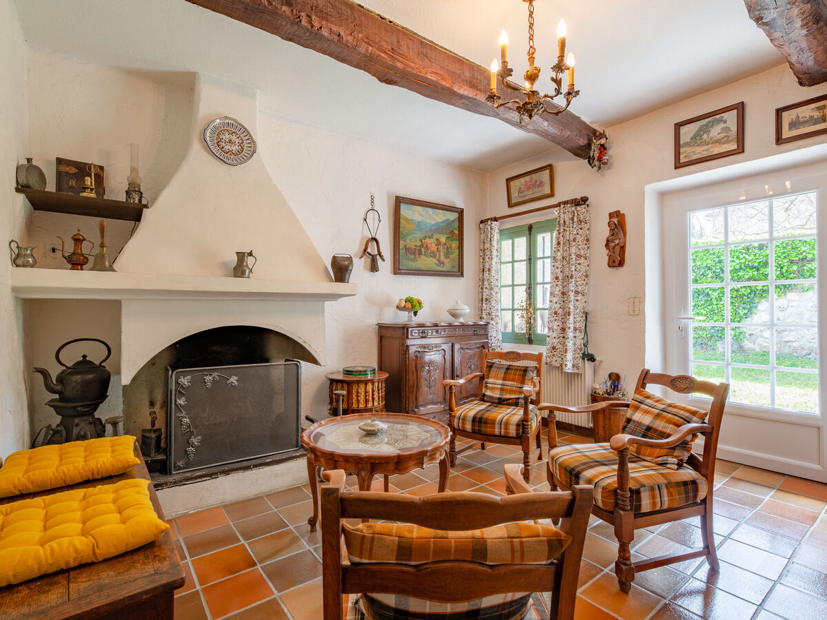 Aménagement romantique: séjour avec cheminée (uniquement à titre de décoration).