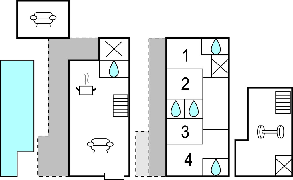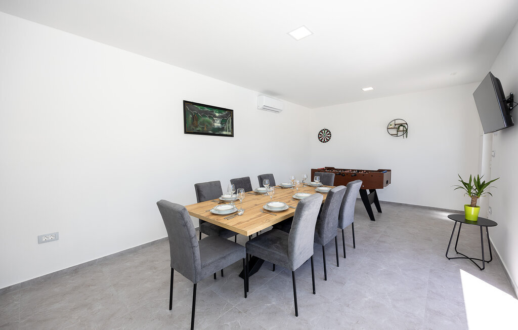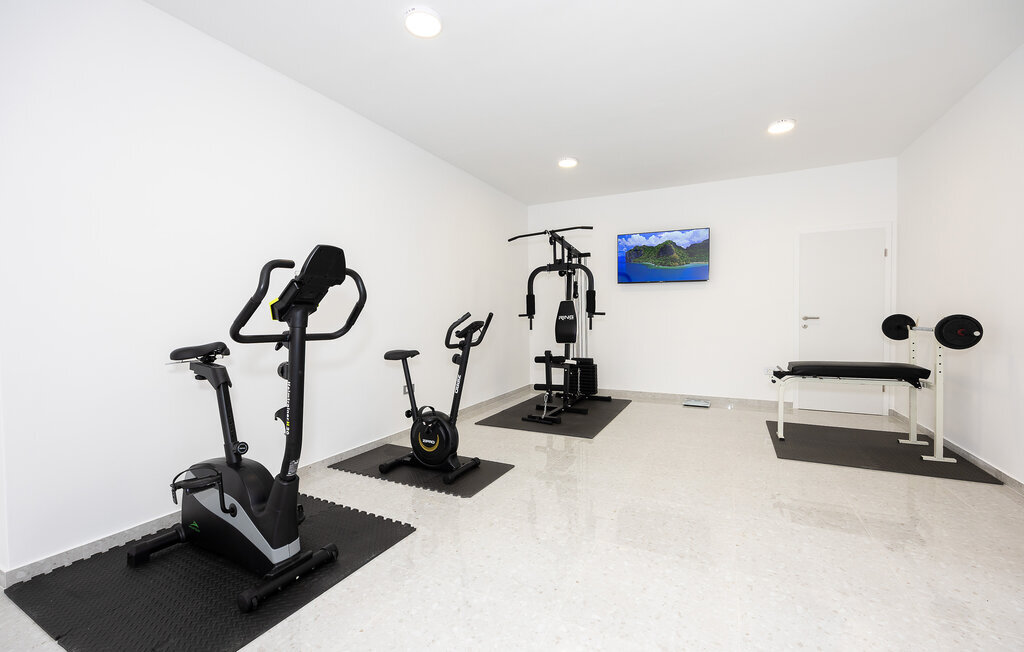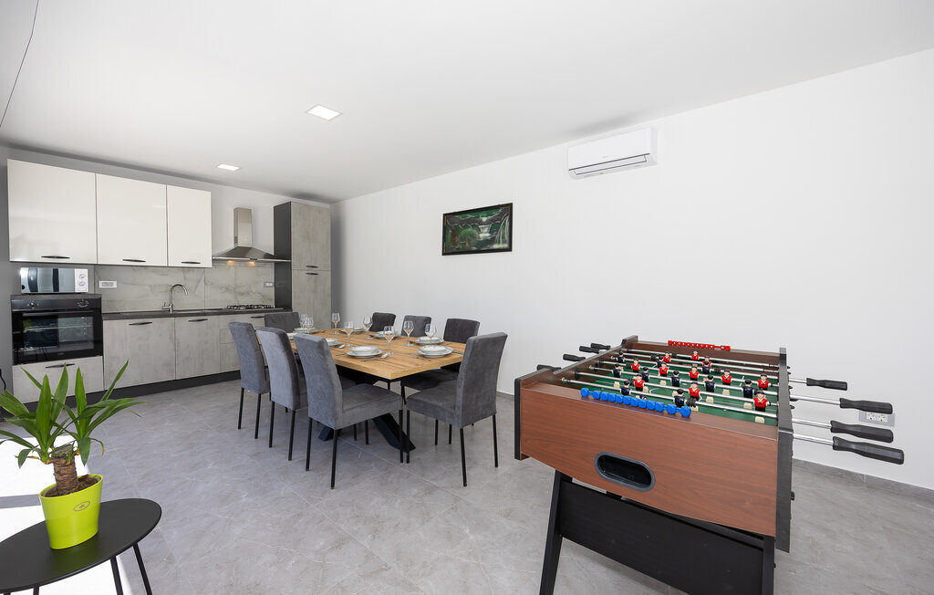 Le logement dispose d'une salle de fitness bien équipée. Vous pourrez y passer du temps de manière sportive en utilisant les appareils d'entraînement ou en jouant au billard, aux fléchettes ou au baby-foot. En raison du microclimat spécial, les températures nocturnes sont nettement plus agréables dans cet environnement qu'en bord de mer. À proximité immédiate se trouve la ville d'Imotski avec les phénomènes naturels des lacs Rouge et Bleu. Faites également des excursions d'une journée dans de belles villes historiques comme Split ou Dubrovnik.