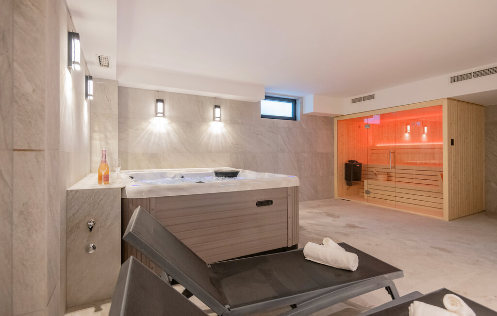 Bien-être à l'extérieur : Location de vacances disposant de chaises-longues et d'un ou plusieurs équipements tels que piscine extérieure, jacuzzi extérieur, lit à baldaquin de jardin etc...