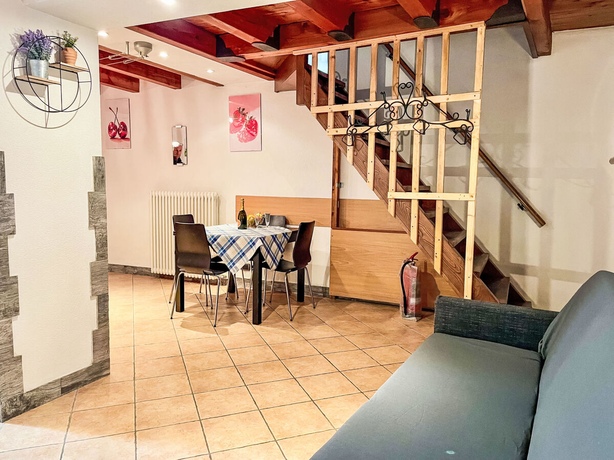 À l'étage inférieur: séjour/chambre à coucher avec 1 lit double et WC séparés.