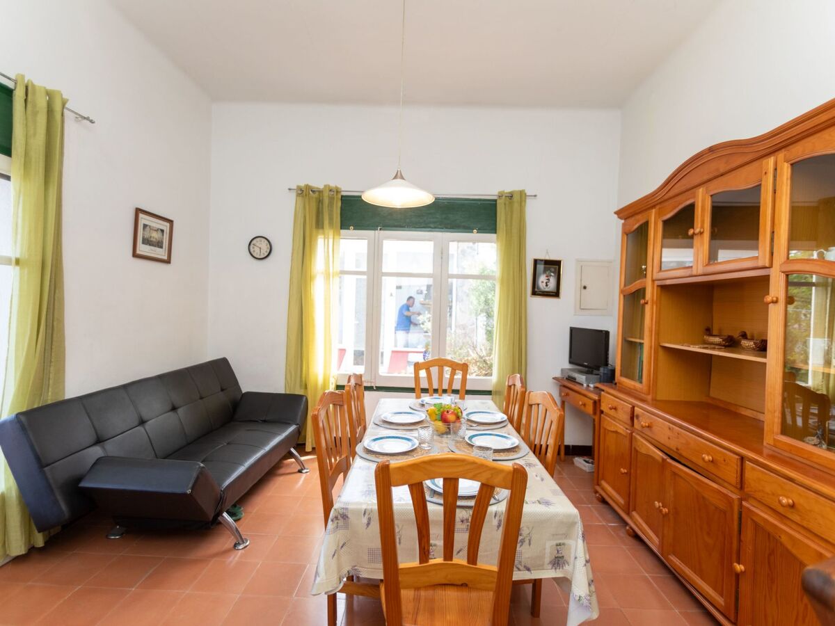 Aménagement simple: séjour/salle à manger avec table pour les repas et TV.