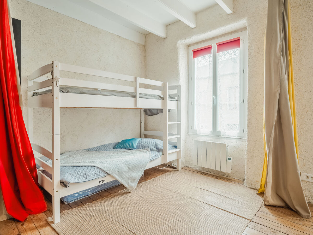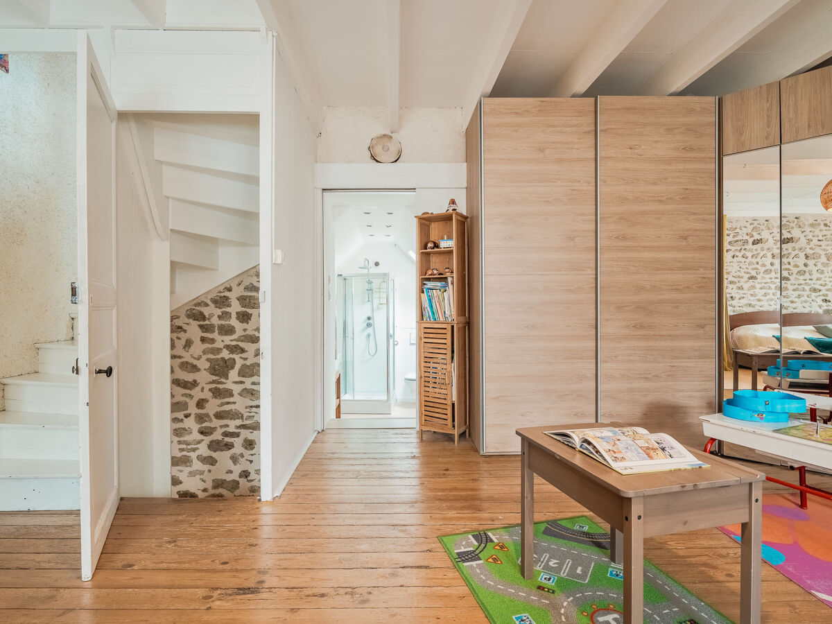 À l'étage supérieur: (escalier en colimaçon) 1 chambre avec 1 x 2 lits superposés (90 cm, longueur 180 cm), 1 grand-lit (1 x 140 cm, longueur 190 cm).