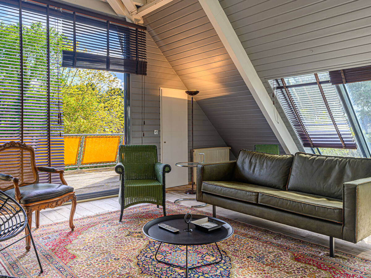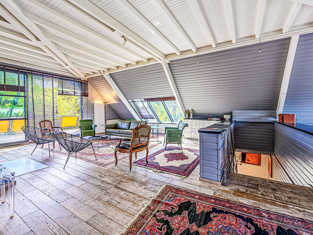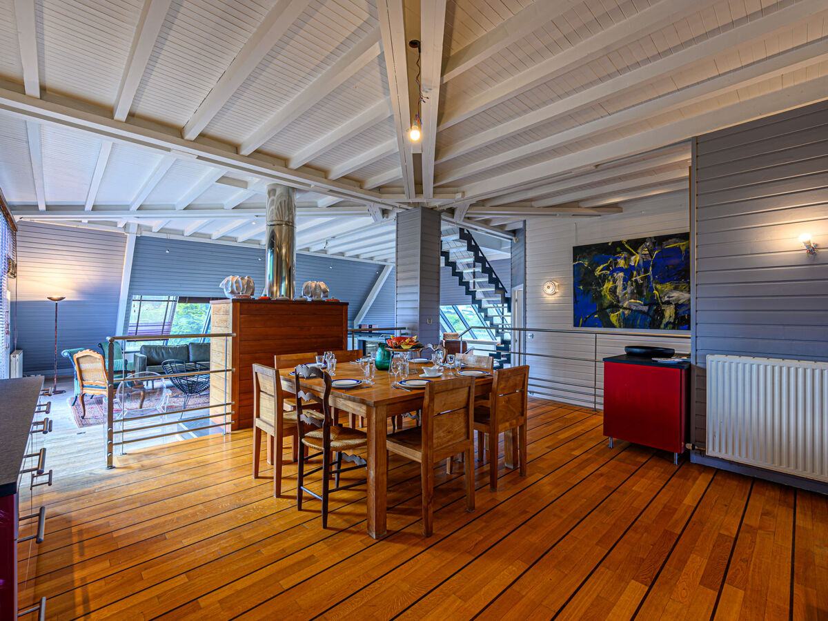 À l'étage supérieur: grand séjour/salle à manger avec TV (écran plat).