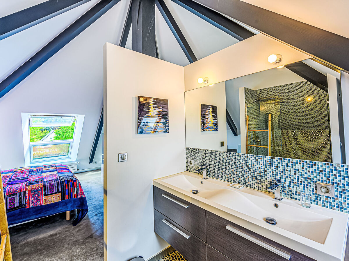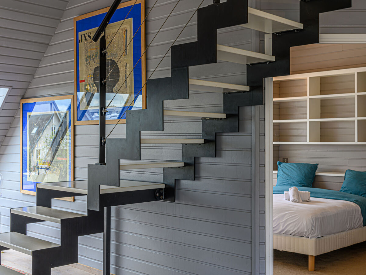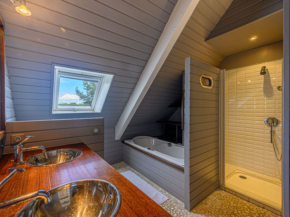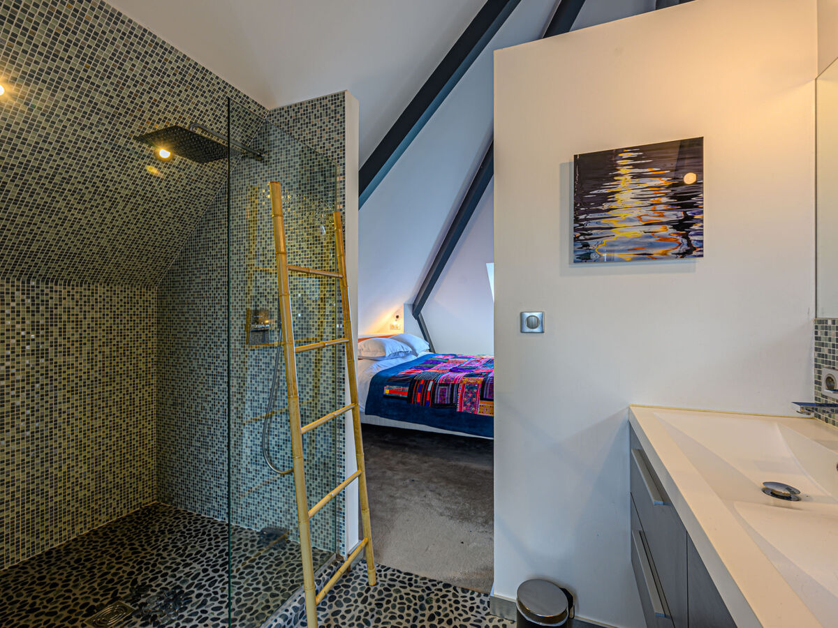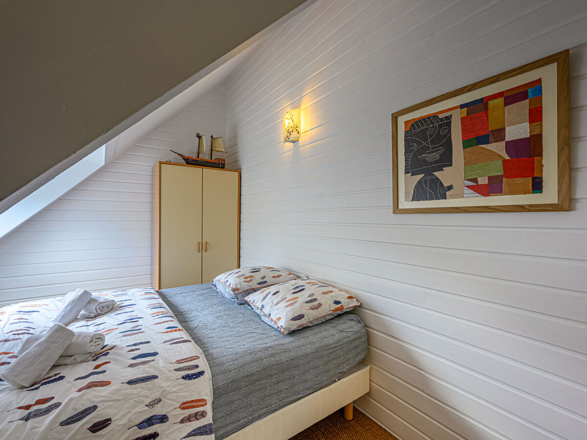 2ème étage: 1 chambre avec 2 lits (90 cm, longueur 200 cm), douche/WC.
