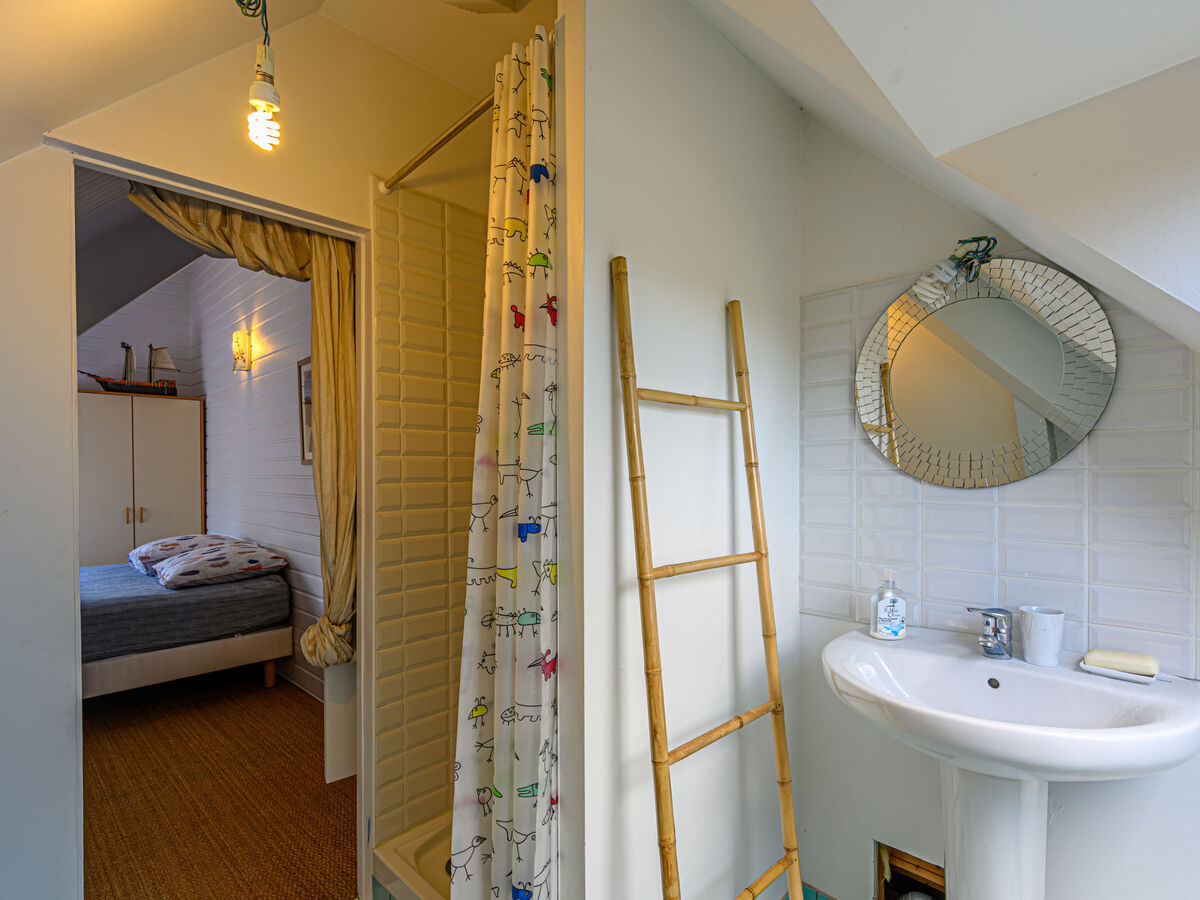 1 chambre avec 2 lits (80 cm, longueur 200 cm), douche.