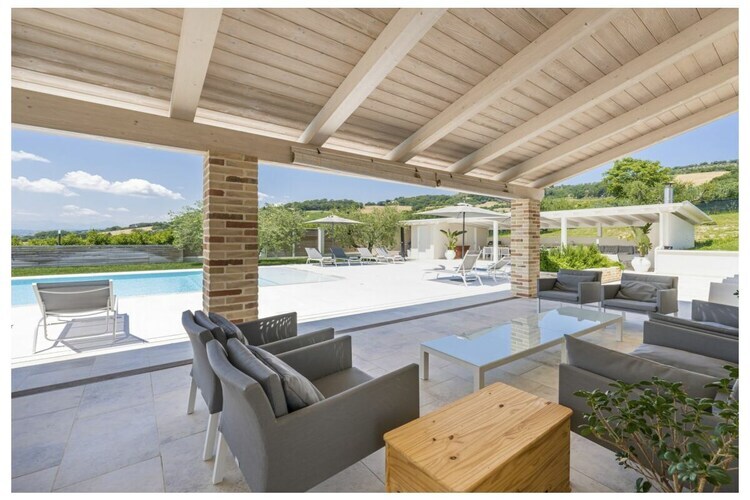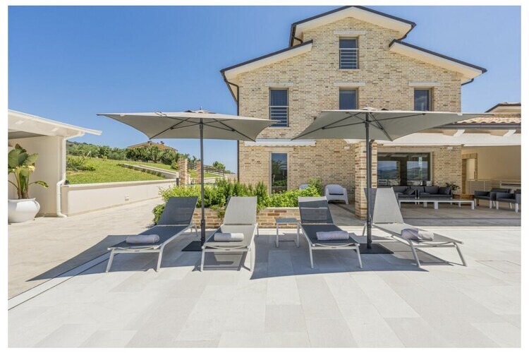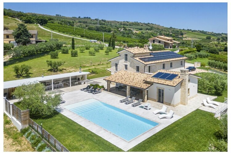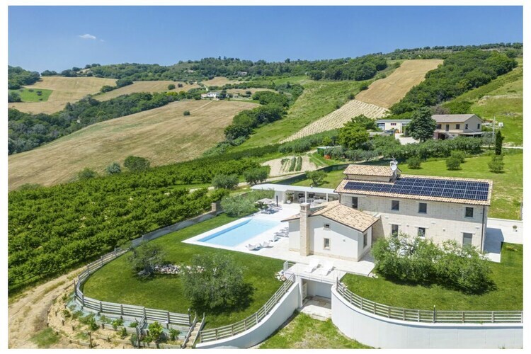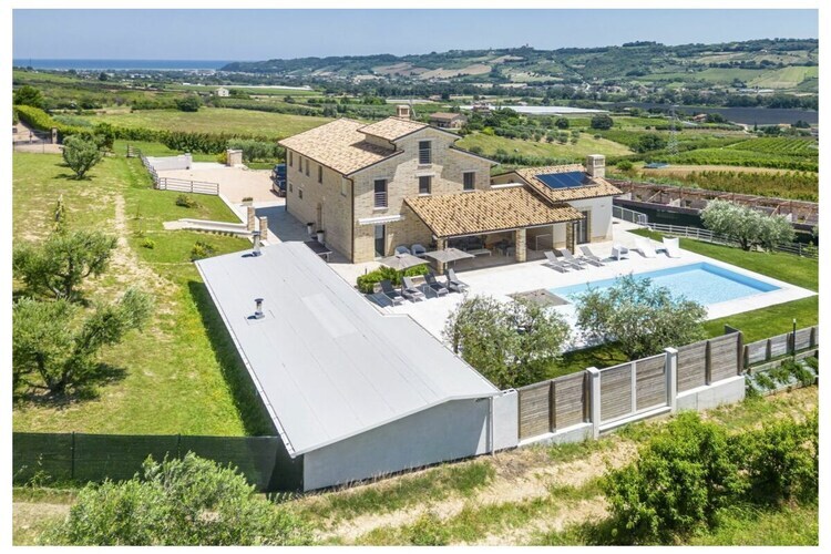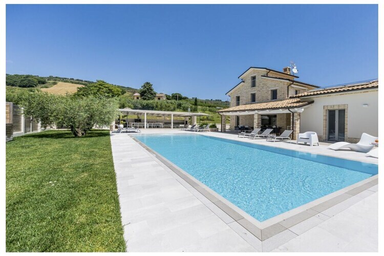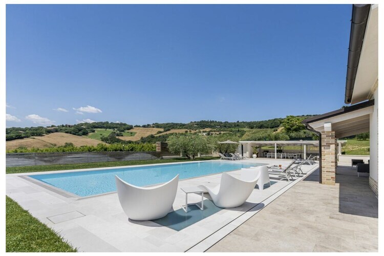 Élégante villa avec piscine à débordement et climatisation, située dans la campagne de Monterubbiano, à quelques kilomètres de la côte des Marches. Il peut accueillir jusqu'à 16 personnes, dispose de 8 chambres et 9 salles de bains.