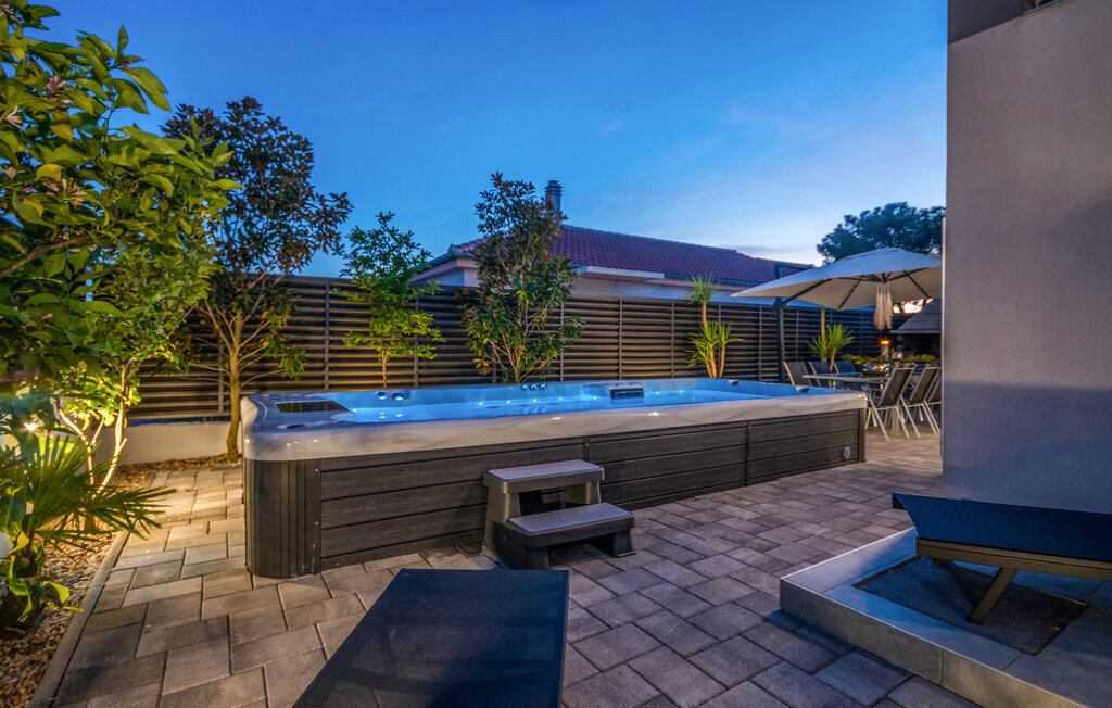 Bien-être à l'extérieur : Location de vacances disposant de chaises-longues et d'un ou plusieurs équipements tels que piscine extérieure, jacuzzi extérieur, lit à baldaquin de jardin etc...