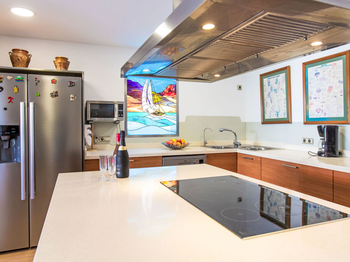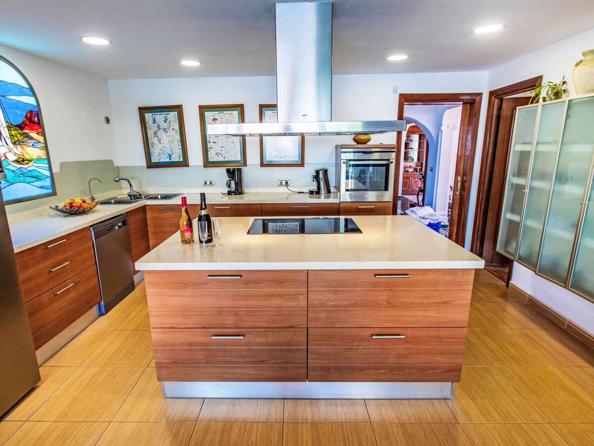Cuisine ouverte (four, lave-vaisselle, 4 plaques à induction, grille-pain, bouilloire électrique, micro-ondes, cafetière électrique).