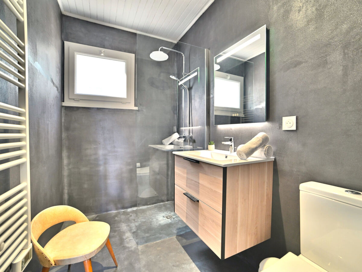 1 chambre avec 1 grand-lit (160 cm, longueur 200 cm), douche.