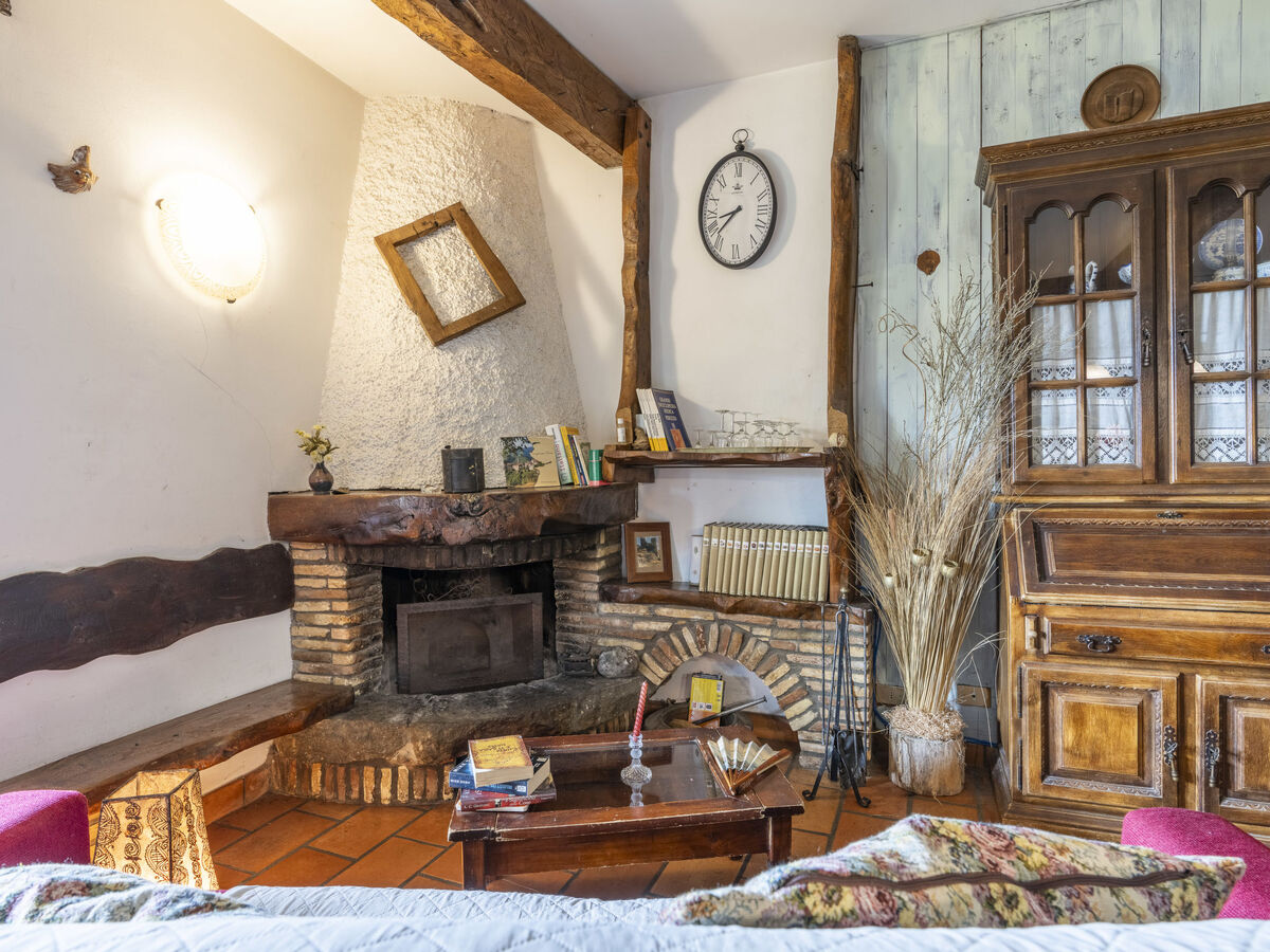 Aménagement de bon goût et plaisant: séjour/salle à manger avec 1 divan-lit double (140 cm, longueur 200 cm), cheminée.