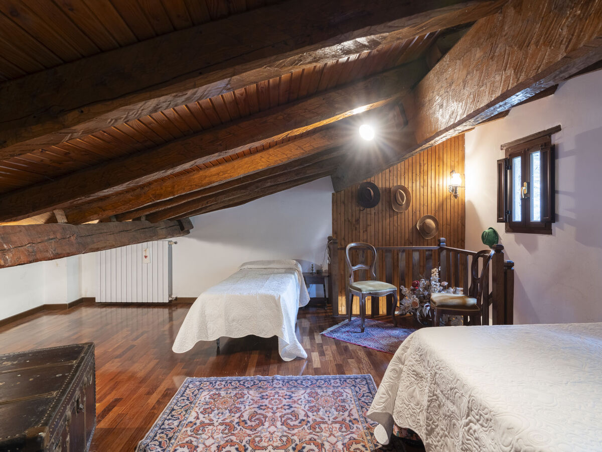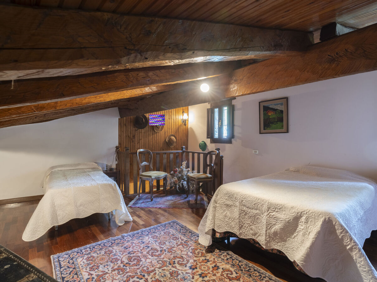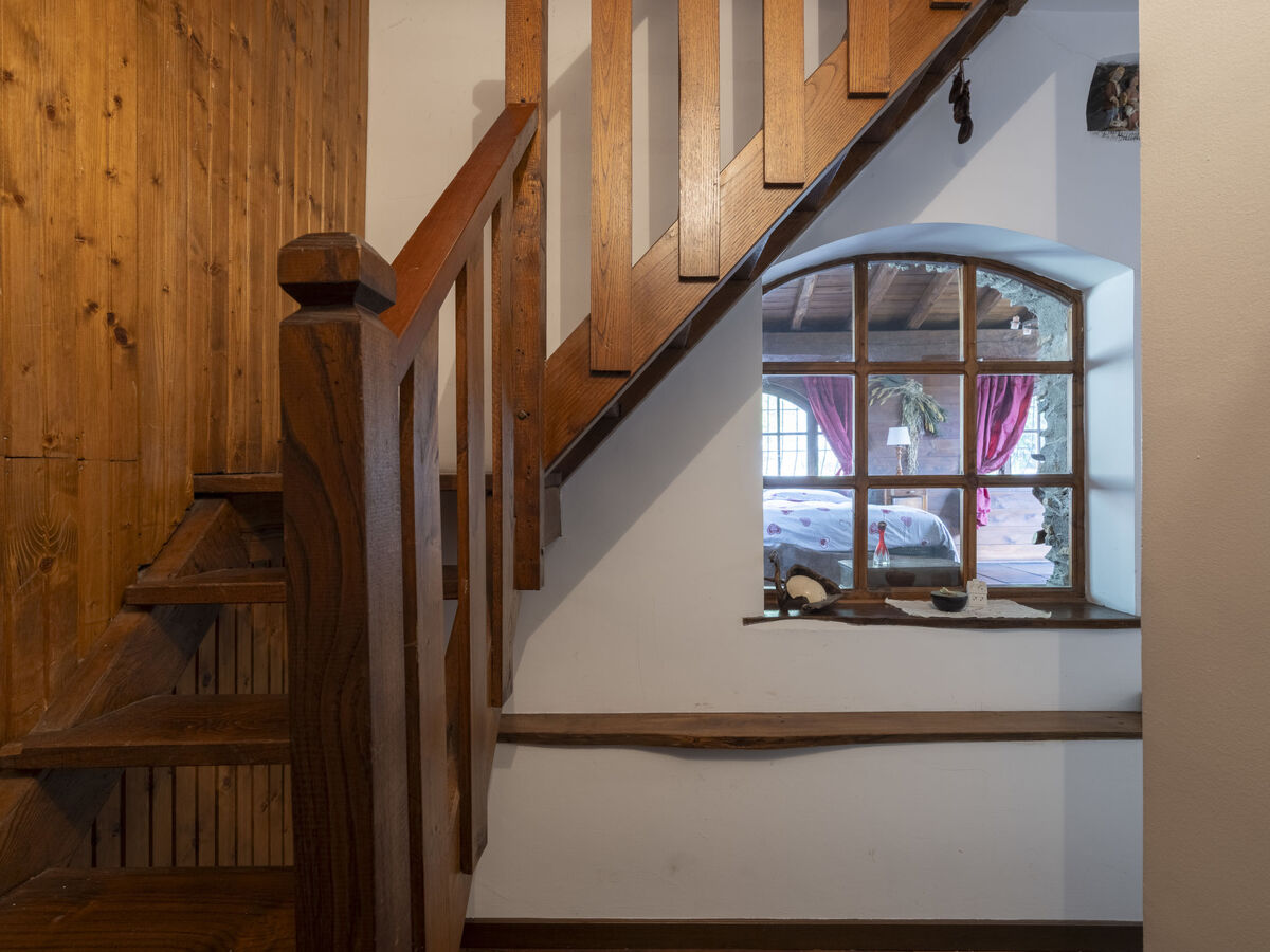 À l'étage supérieur: hauteur plafond 180 cm avec fenêtre sous le toit avec 1 lit (90 cm, longueur 200 cm), 1 grand-lit (120 cm, longueur 200 cm).
