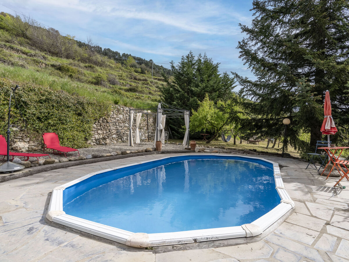 A usage privé: terrain 2'000 m2 (clôturé), jardin 1'000 m2 (pas clôturé) avec plantes et arbres, piscine (8 x 4 m, disponibilité saisonnière: 15.Mai.