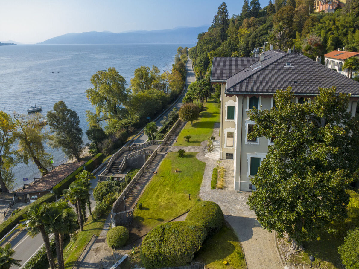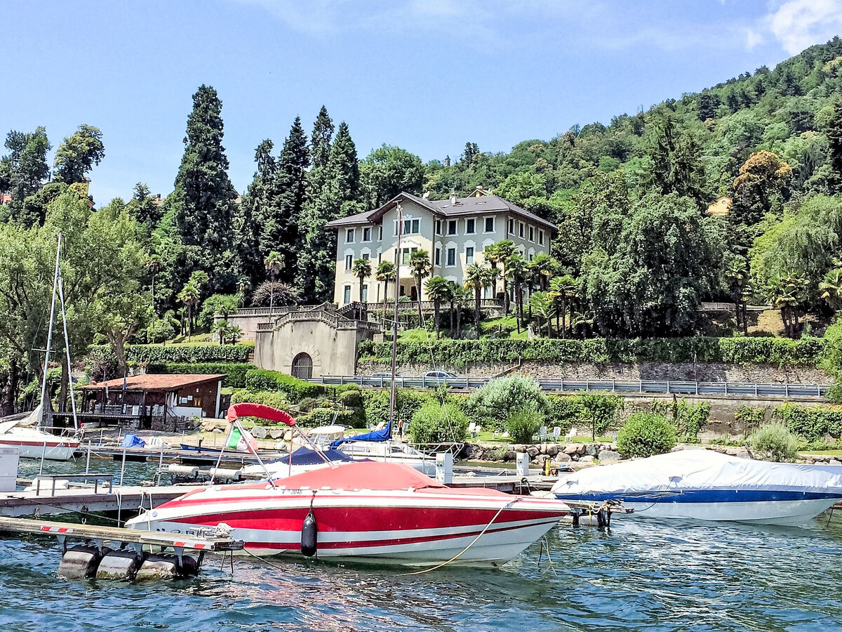 À 1 km du centre de Ghiffa, à 3.5 km du centre de Verbania Intra, sur un versant, à 80 m du lac, route à traverser.