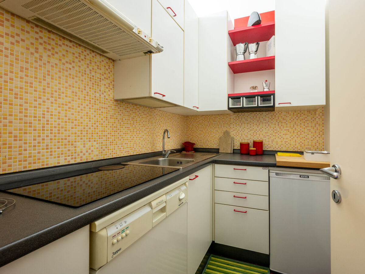 Petite cuisine (lave-vaisselle, 4 plaques à induction, cafetière électrique).